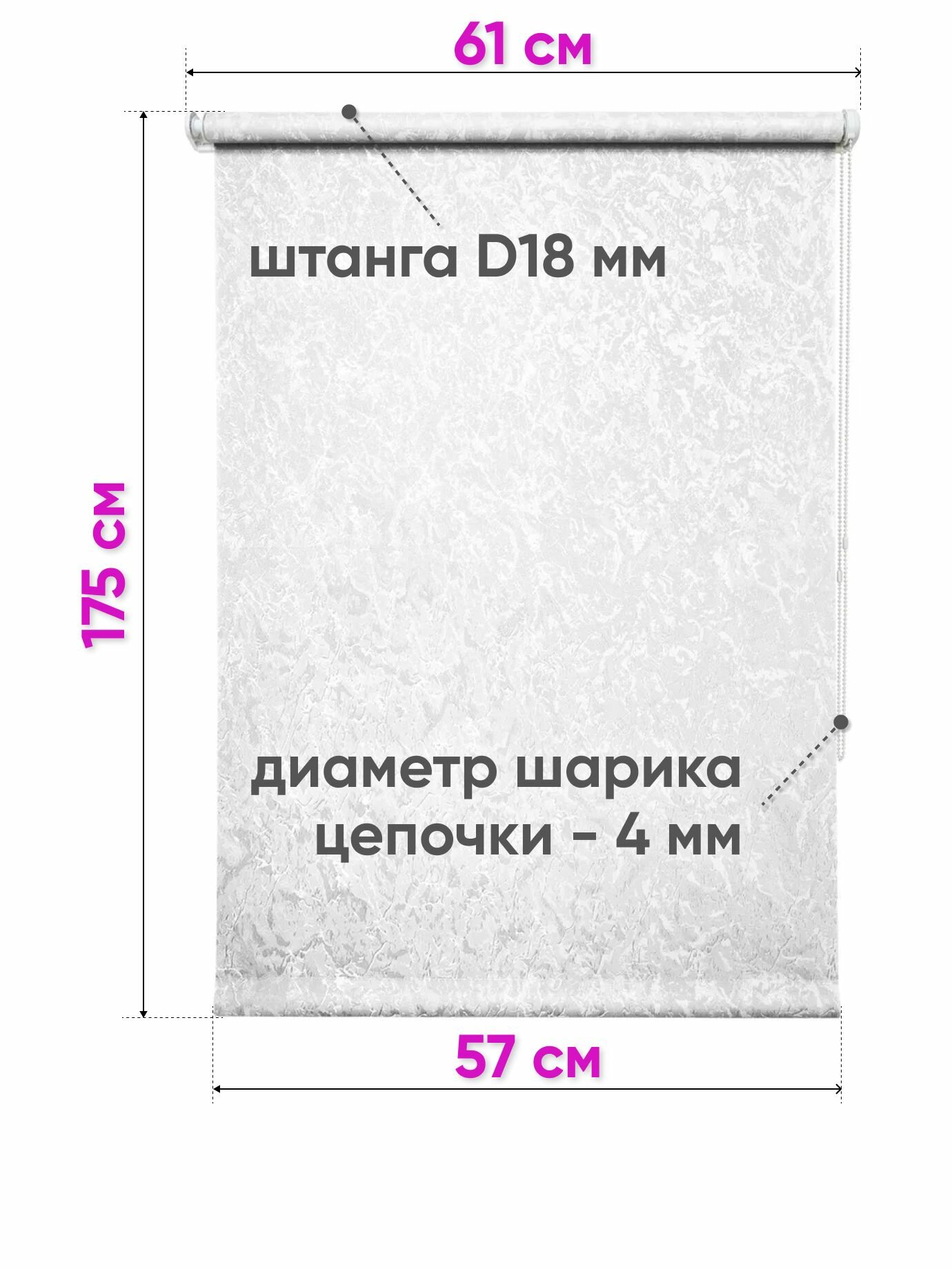 Рулонные шторы на окна без сверления 60 x 175 см - Жалюзи рольшторы "Сноу", цвет белый