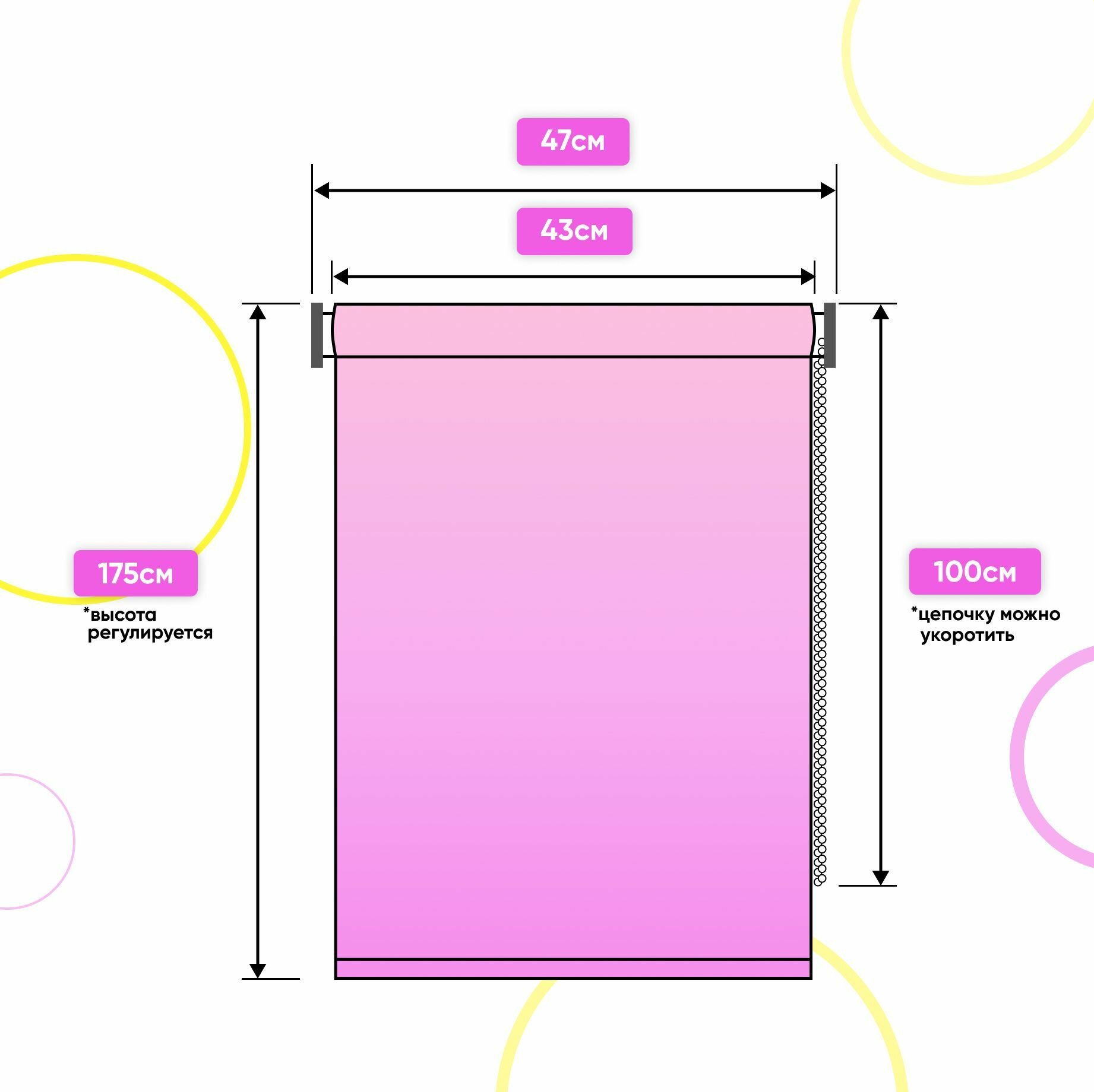 Рулонные шторы с направляющими струнами 40 x 175 см - Жалюзи на окна "Сноу", цвет пудровый