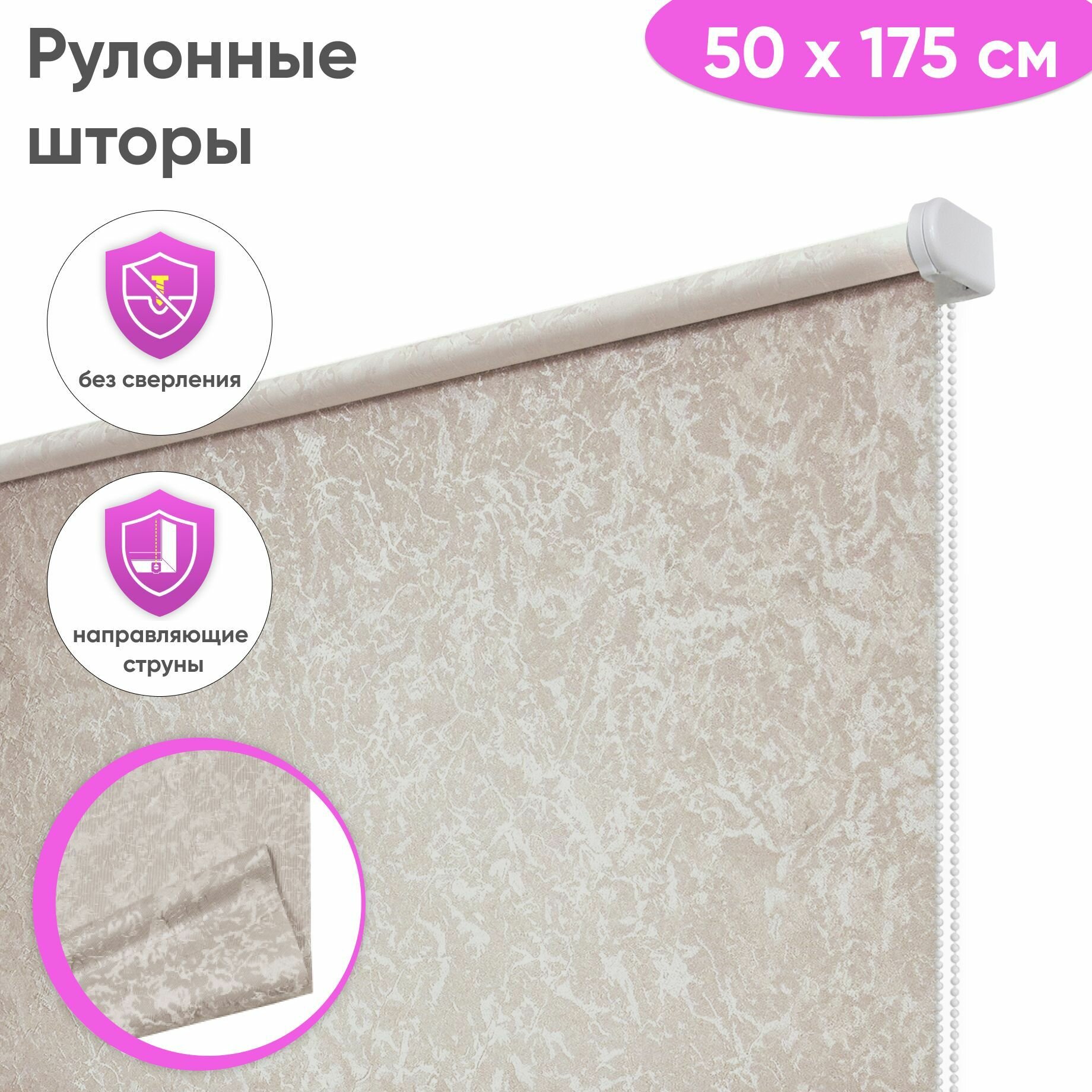 Рулонные шторы с направляющими струнами Сноу 52 x 175 см, цвет светло-бежевый