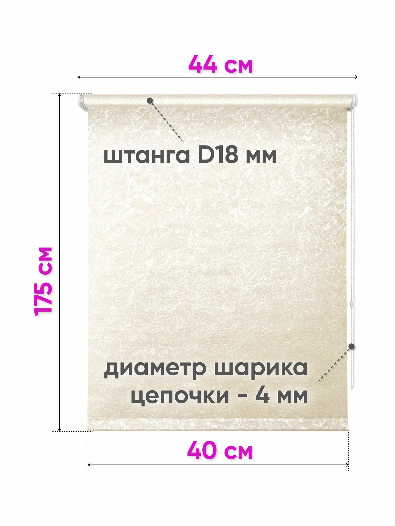 Рулонные шторы с направляющими струнами 40 x 175 см - Жалюзи на окна Сноу, светло-бежевый