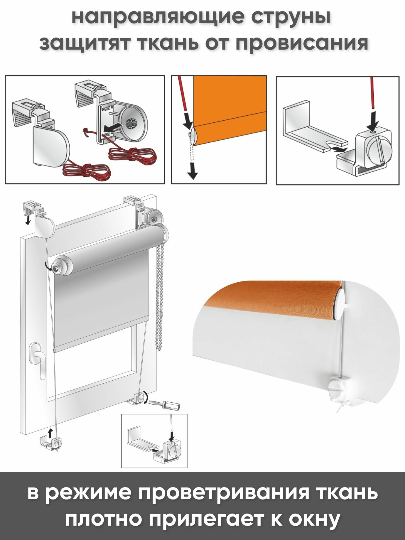 Рулонные шторы с направляющими струнами 40 x 175 см - Жалюзи на окна "Сноу", цвет оранж