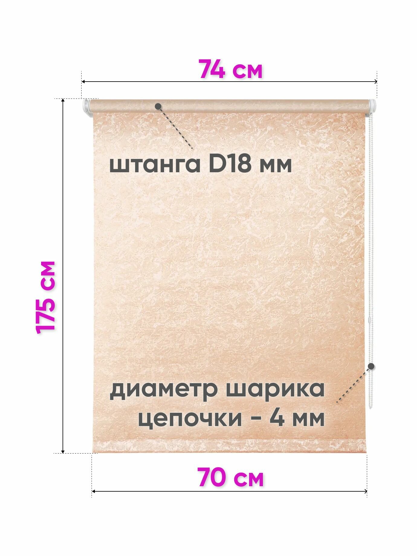 Рулонные шторы Сноу, 72 x 175 см, цвет персиковый, рулонные жалюзи на окна