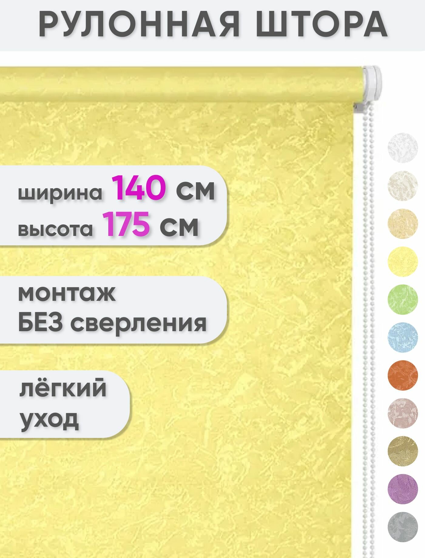 Рулонные шторы на окна без сверления 70 x 175 см - Жалюзи рольшторы "Сноу", цвет желтый
