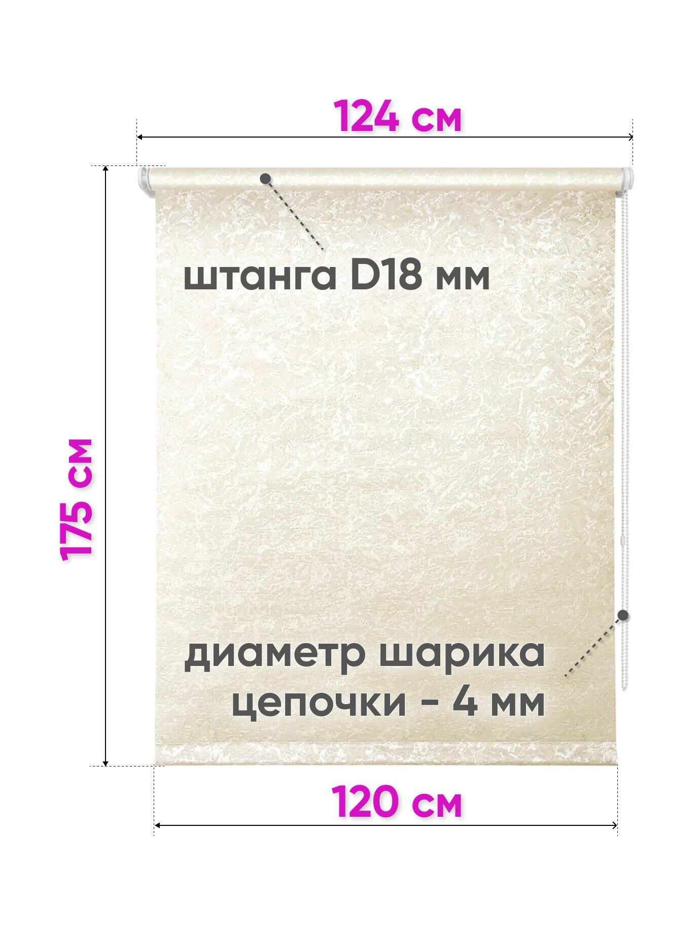 Рулонная штора на окна 160 x 175 см - Жалюзи на окна "Сноу", цвет светло-бежевый