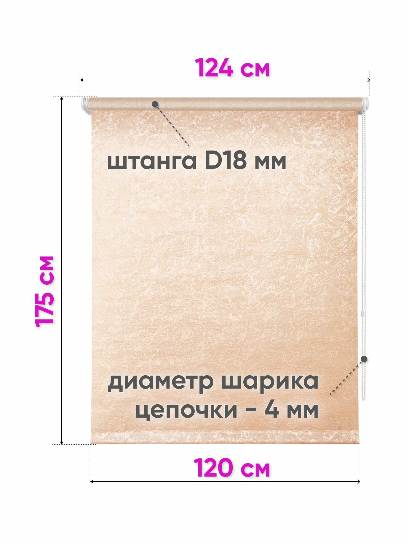 Рулонная штора на окна 160 x 175 см - Жалюзи на окна "Сноу", цвет персик
