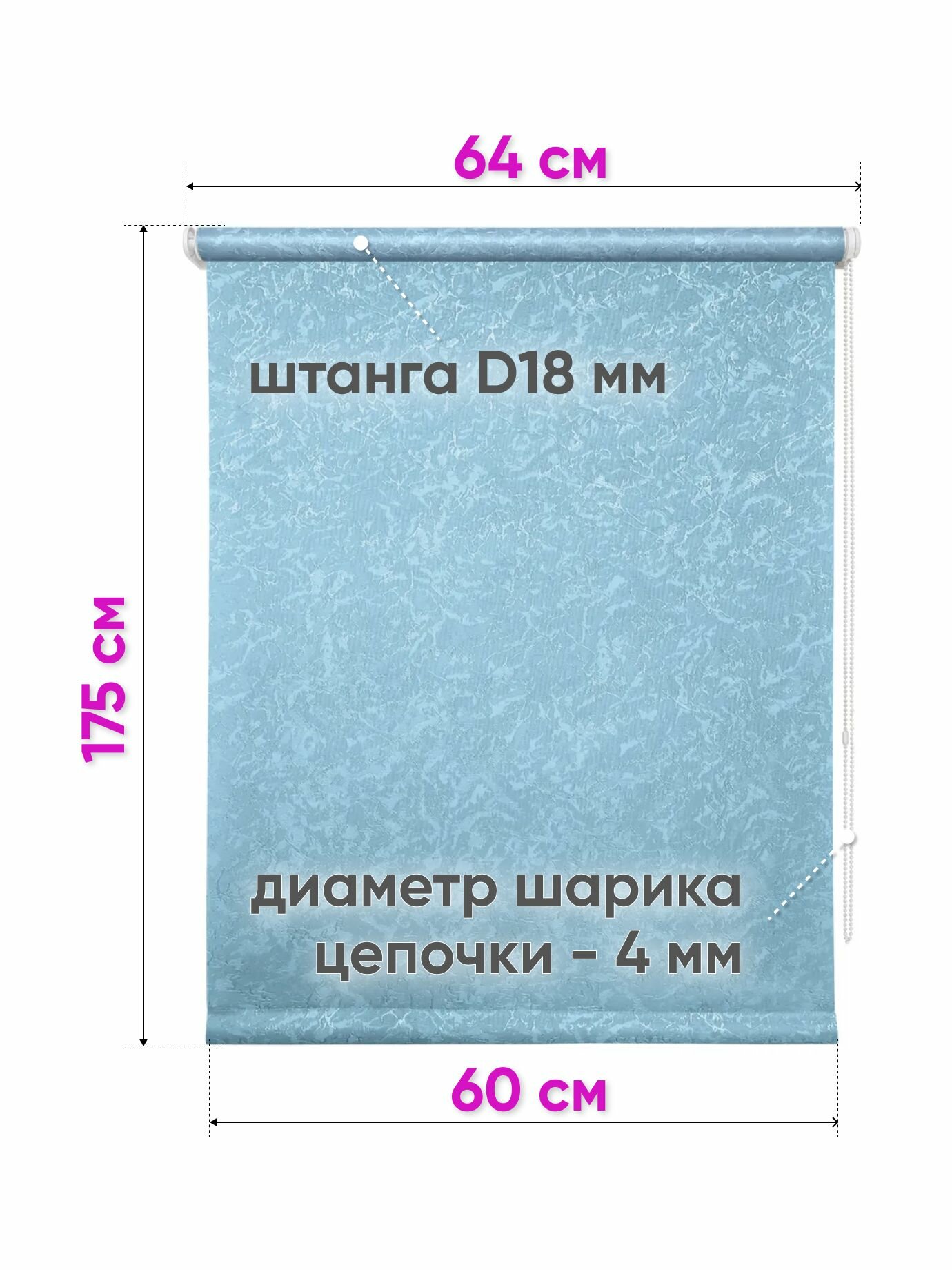 СохранитьРулонные шторы на окна без сверления 60 x 175 см - Жалюзи рольшторы "Сноу", цвет голубой интересное: