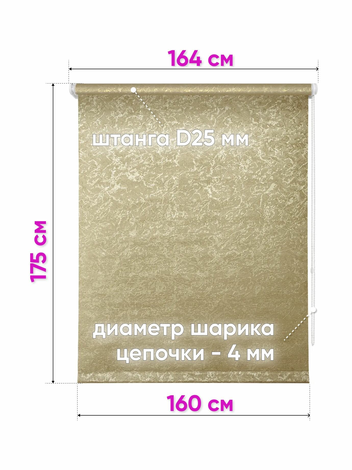 Рулонная штора на окна 160 x 175 см - Жалюзи на окна "Сноу", цвет светло-бежевый