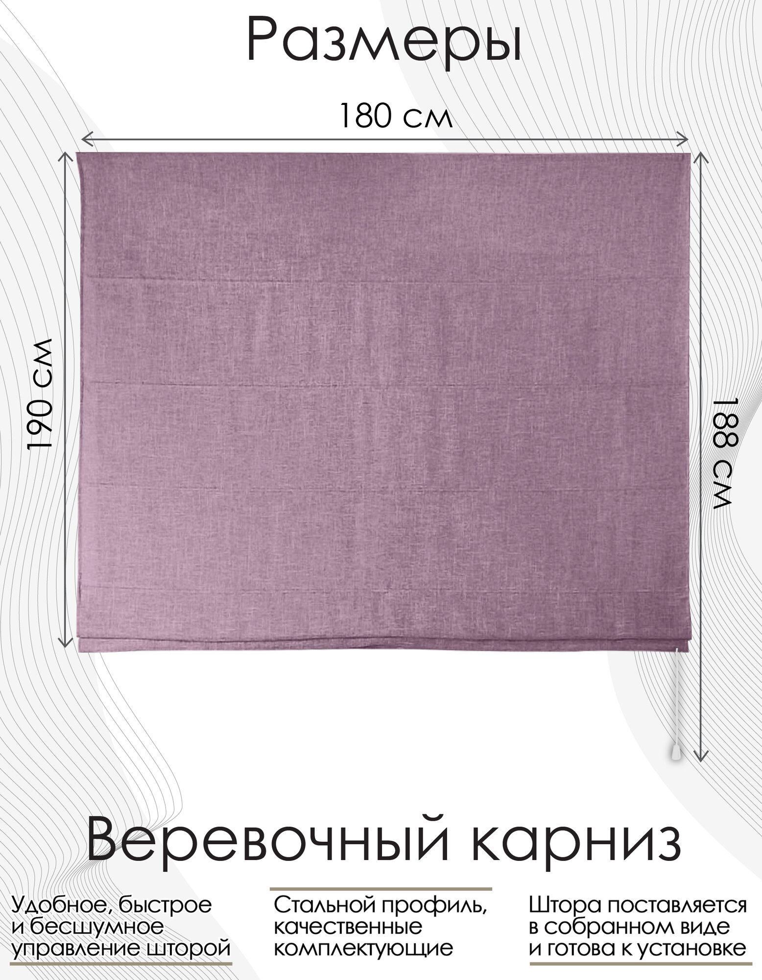 СохранитьРимская штора Эскар Эдит, веревочный механизм, полиэстер, фиолетовый, 180х190 см интересное: