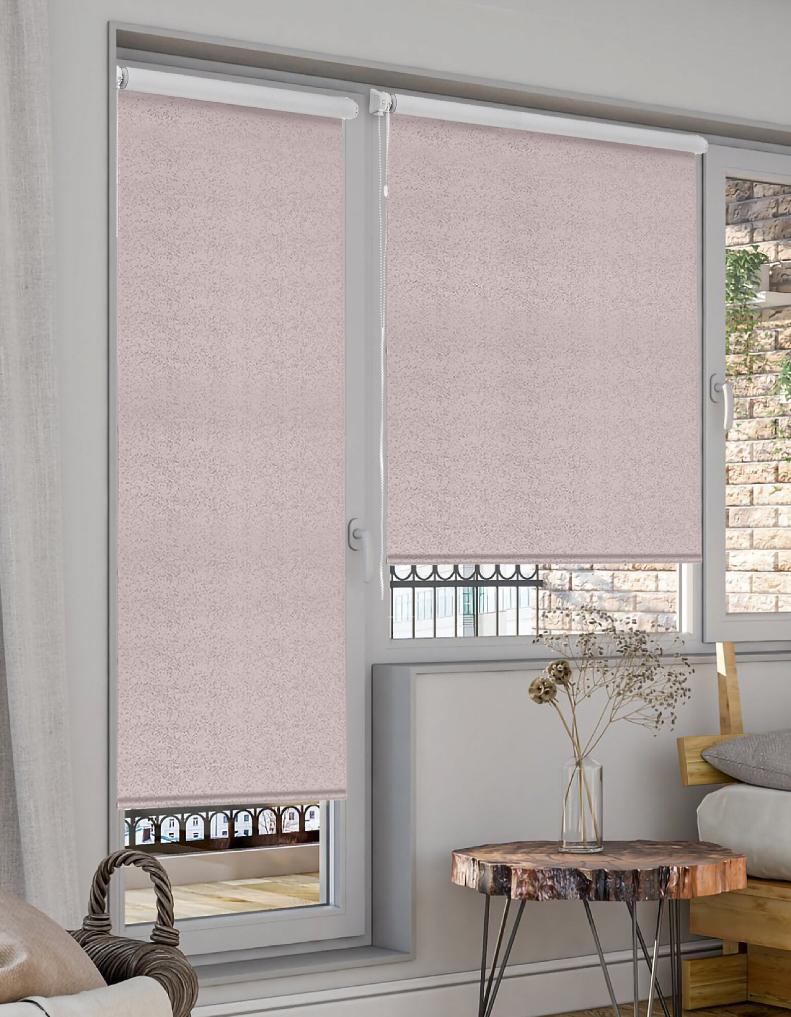 Рулонная штора для балконной двери Эскар Старк Blackout, полиэстер, нюдовый, 62х215 см