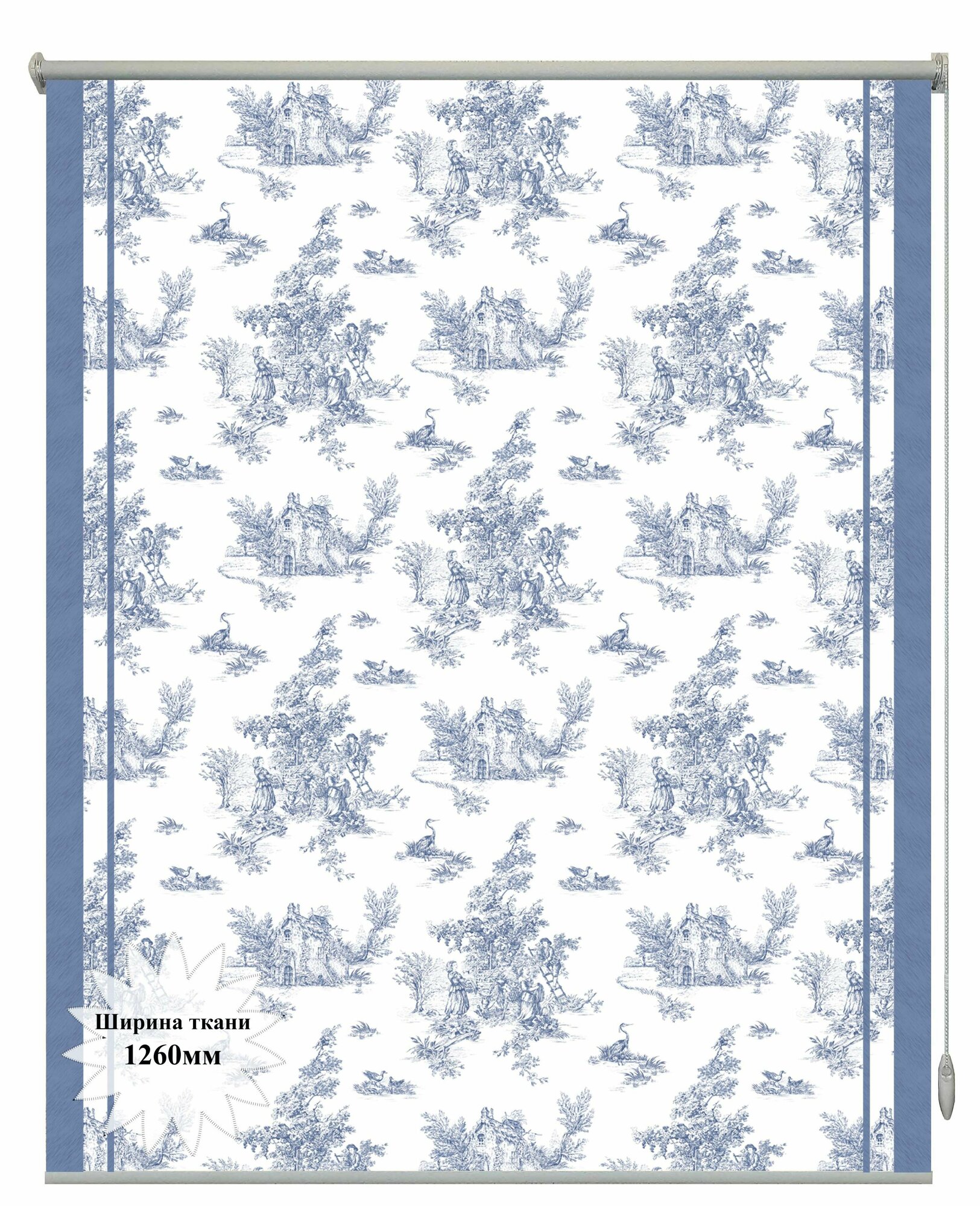 Купить Рулонная штора Блэкаут (Blackout) с фотопечатью Village синий 126х150см