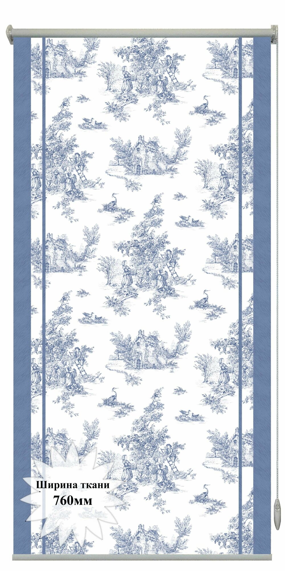 Купить Рулонная штора Блэкаут (Blackout) с фотопечатью Village синий 76х150см