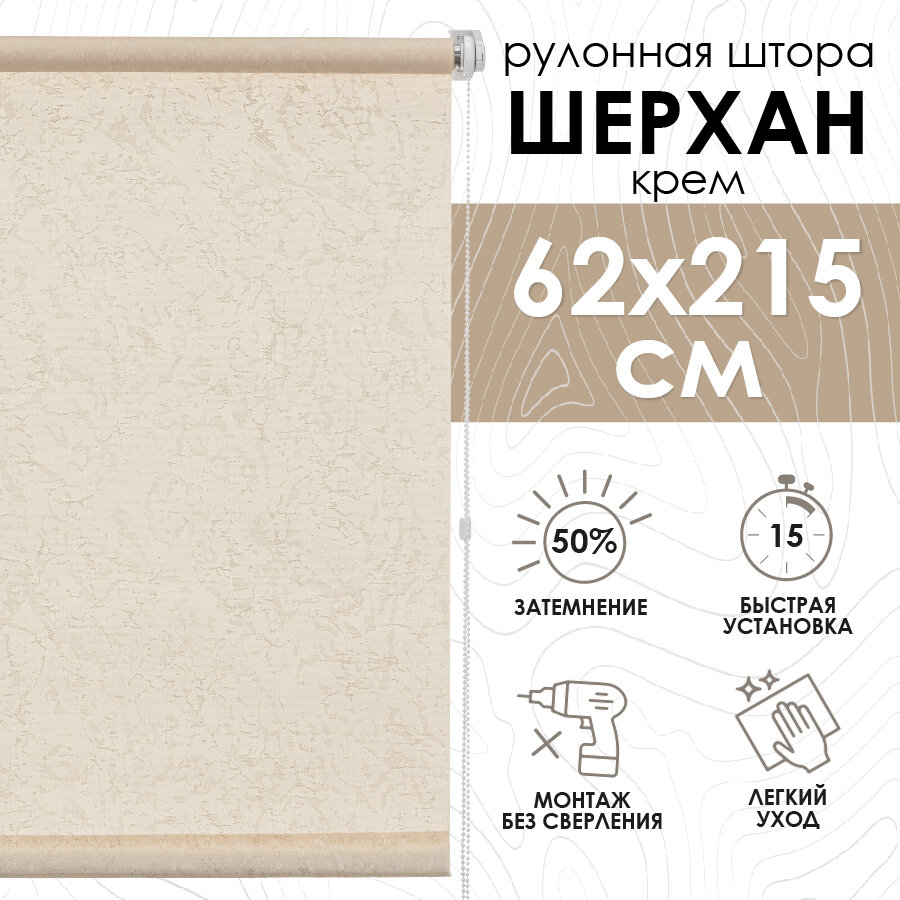 Рулонная штора для балконной двери Эскар Шерхан, полиэстер, крем, 62х215 см интересное: