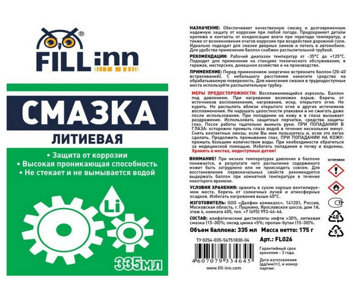 Fill INN FL026 Смазка универсальная литиевая , 335 мл аэрозоль 71026 .