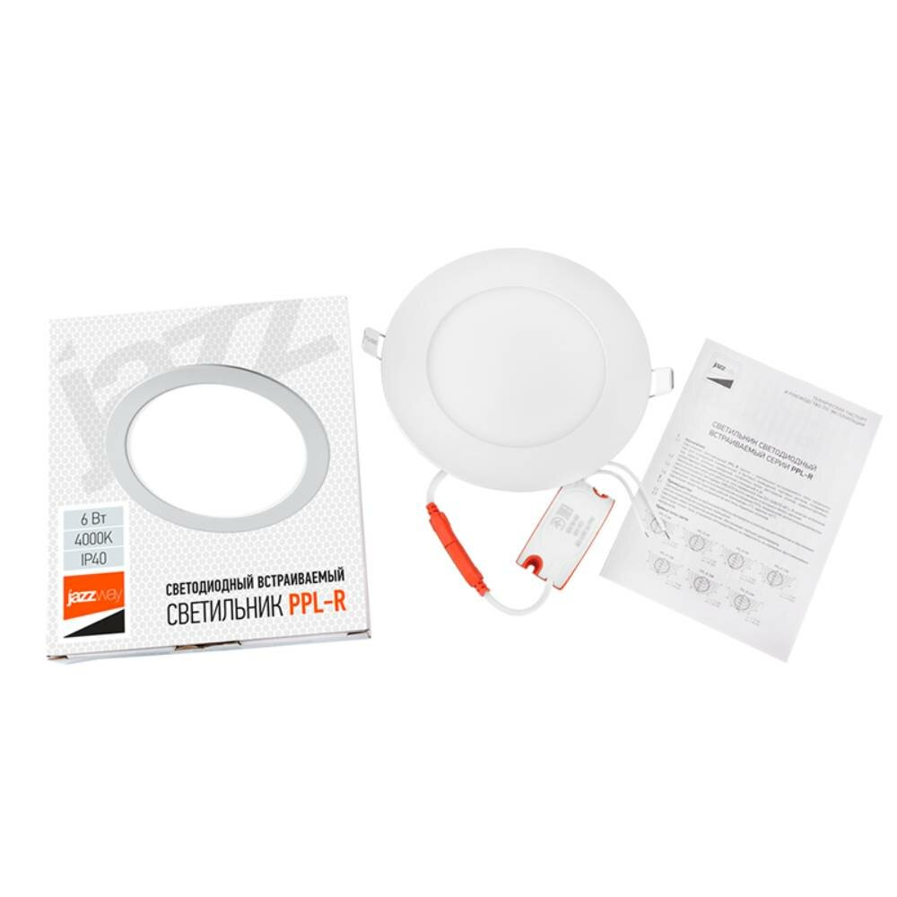 Светильник светодиодный JazzWay PPL-R-6-4000 6W 4000K 400Лм встраиваемый IP40 белый .5008465A (комплект из 3 шт)