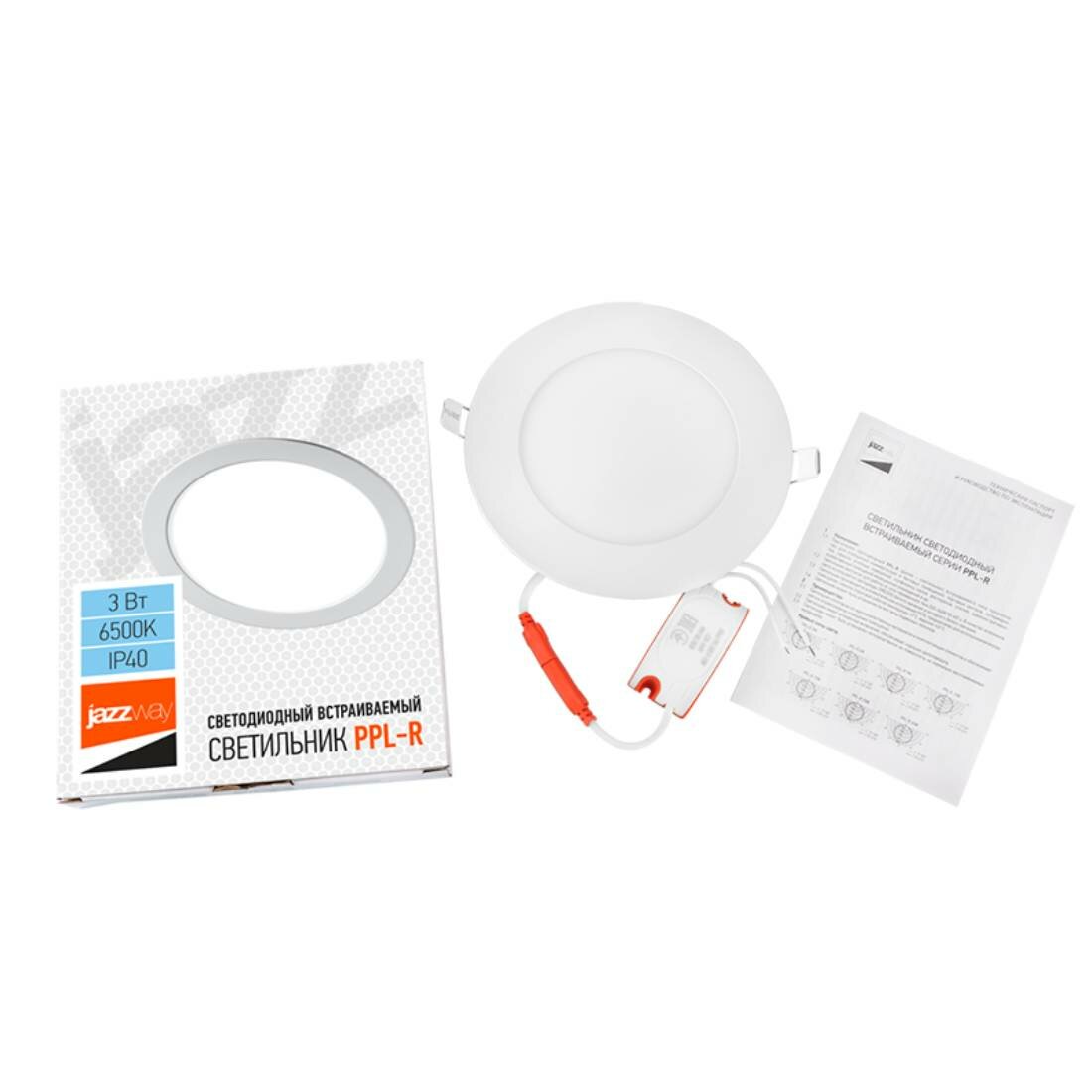 Светильник светодиодный JazzWay PPL-R-6-4000 6W 4000K 400Лм встраиваемый IP40 белый .5008465A (комплект из 3 шт)