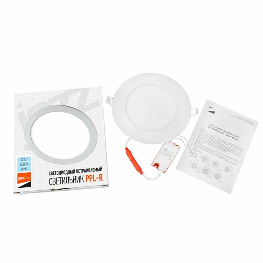 Светильник светодиодный JazzWay PPL-R-12-6500 12W 6500K 800Лм встраиваемый IP40 белый .5008564A (комплект из 3 шт)
