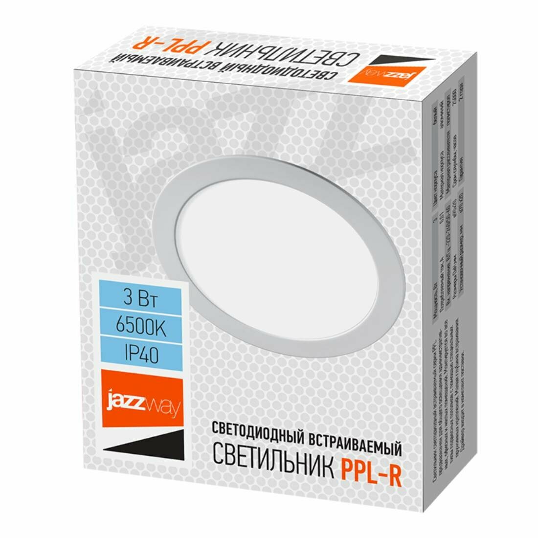 Светильник светодиодный JazzWay PPL-R-6-6500 6W 6500K 400Лм встраиваемый IP40 белый (комплект из 3 шт)