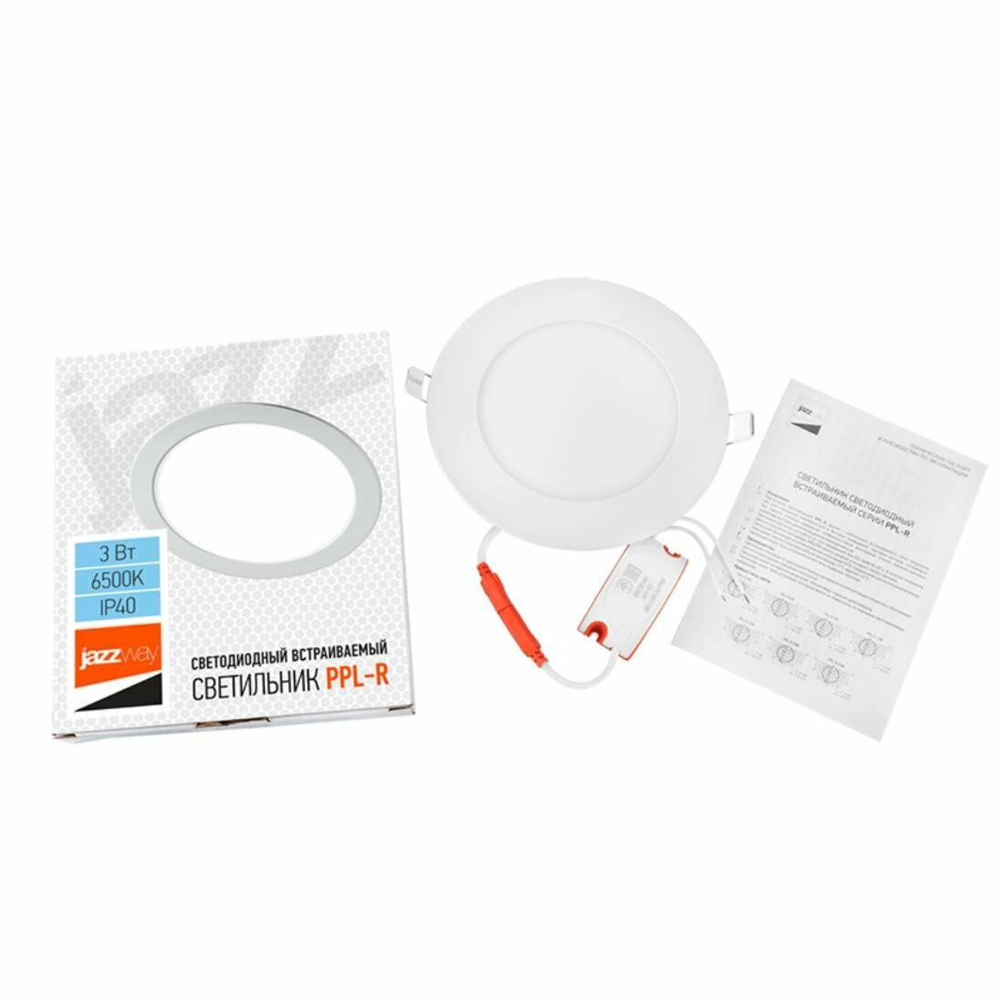 Светильник светодиодный JazzWay PPL-R-6-6500 6W 6500K 400Лм встраиваемый IP40 белый (комплект из 3 шт)