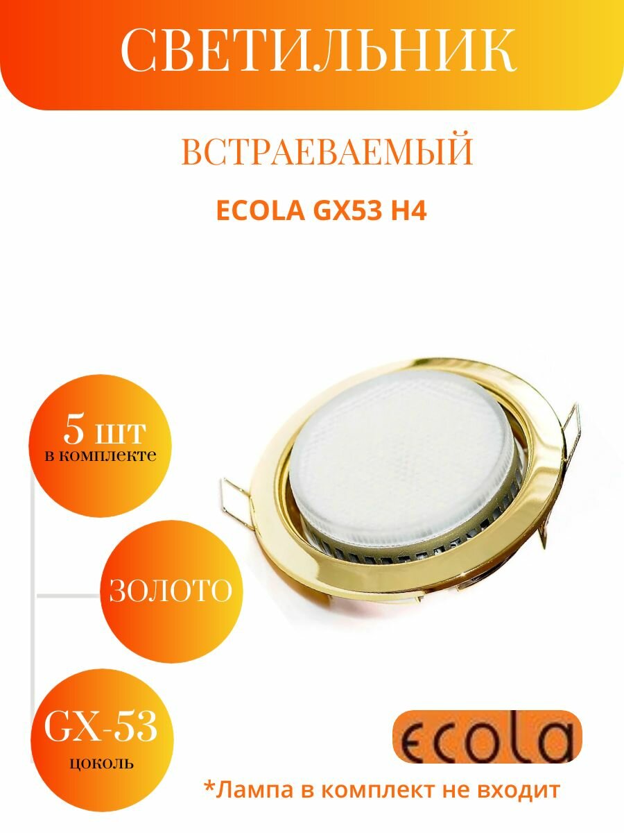 Купить Светильник Ecola GX53, для натяжных потолков, металл, светодиодный, золотой, 5 шт.