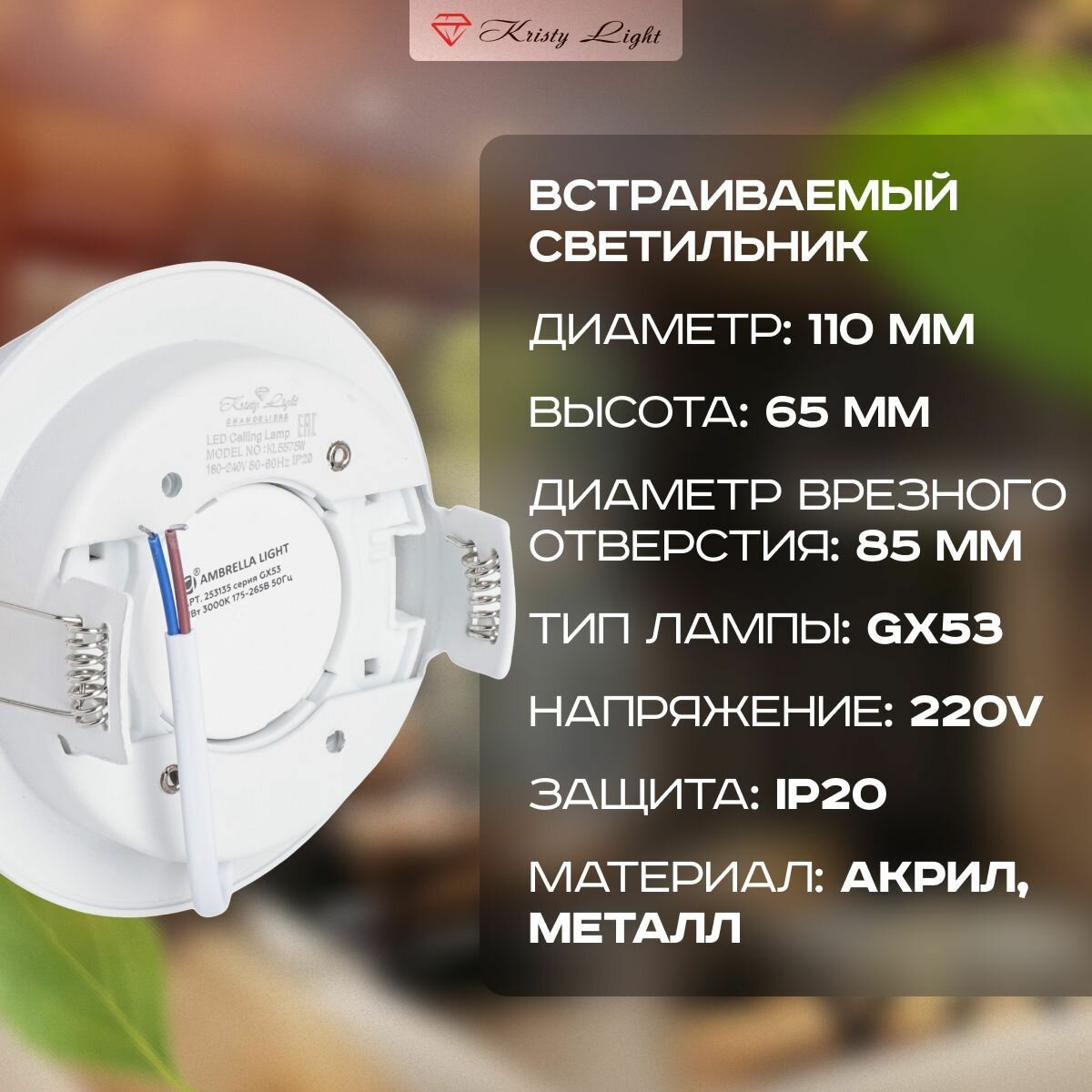Светильник потолочный встраиваемый Kristy Light KL5577 GX53