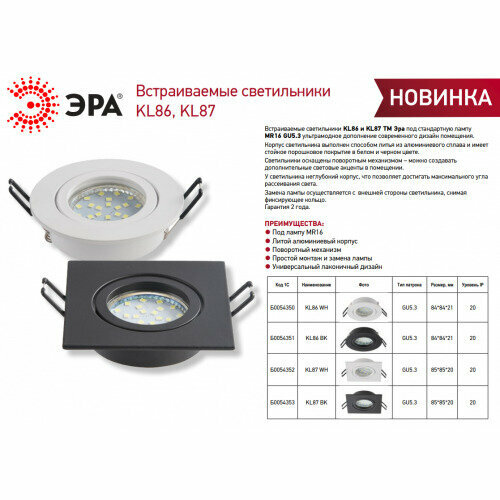 Встраиваемый светильник алюминиевый КЛ86 WH MR16/GU5.3 белый интересное: