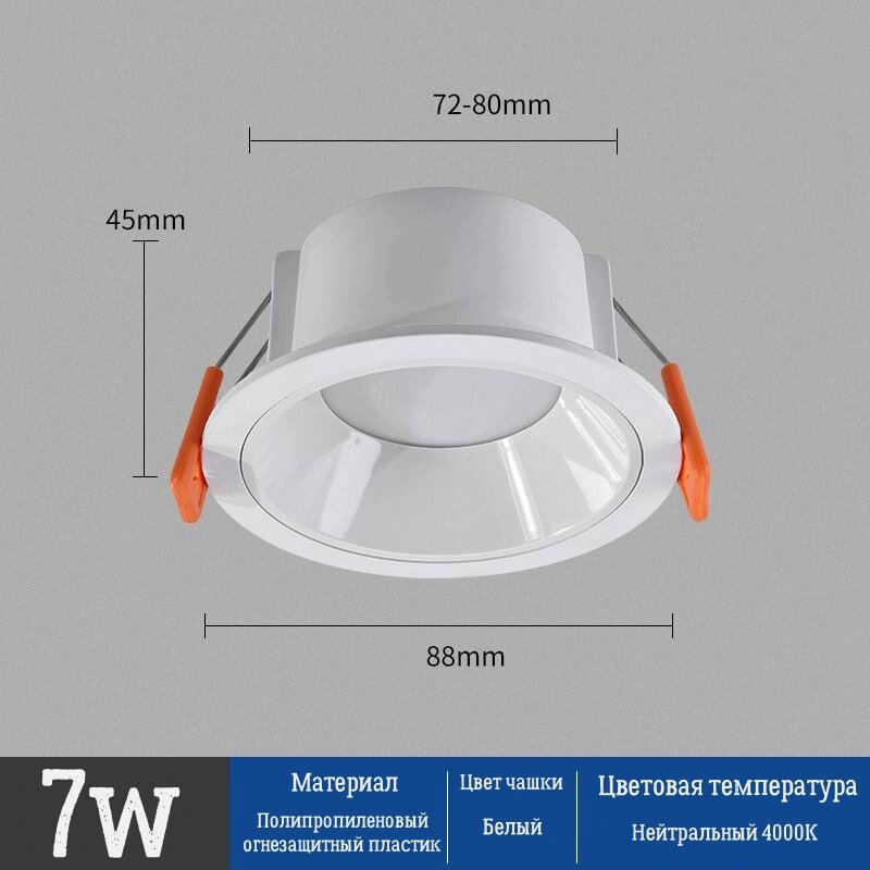 Встраиваемый светильник потолочный 4000K (Нейтральный свет) 7W / Белый интересное: