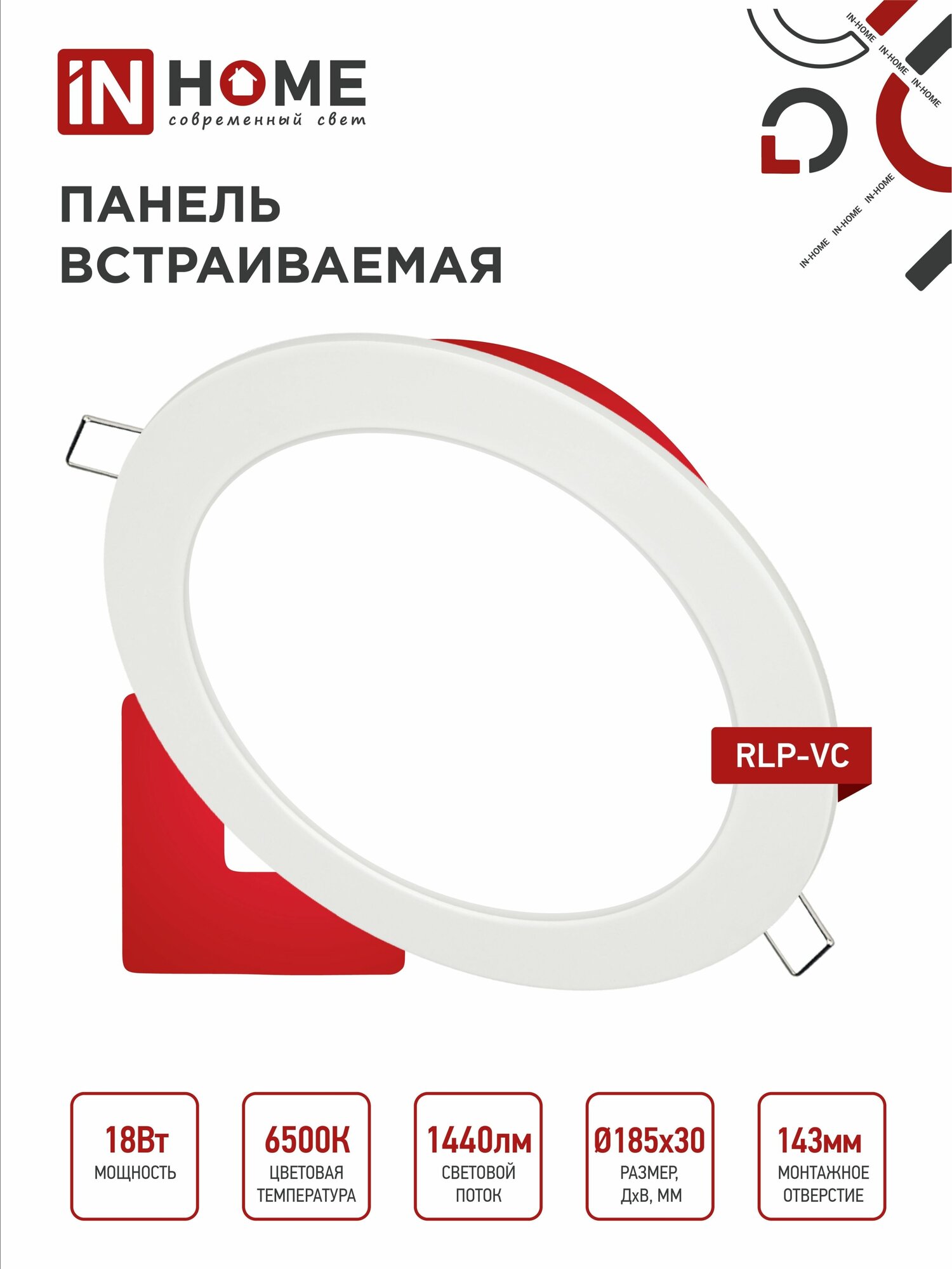 Светильник светодиодный RLP-VC 18Вт 230В 6500К 1440лм 185мм бел. (Аналог Downlight) IP40 IN HOME 4690612024547 интересное: