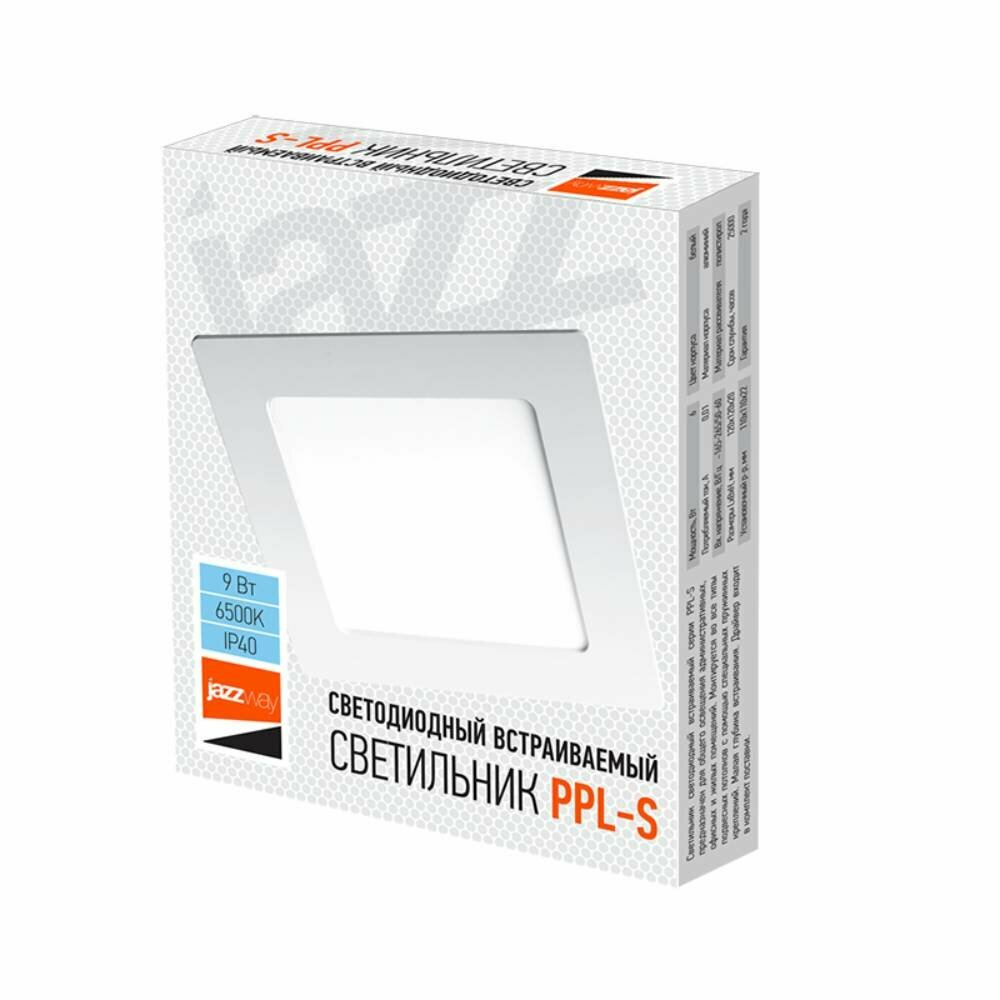Светильник светодиодный JazzWay PPL-S 9W 6500K 600Лм встраиваемый IP40 белый .5008281A (комплект из 3 шт) интересное: