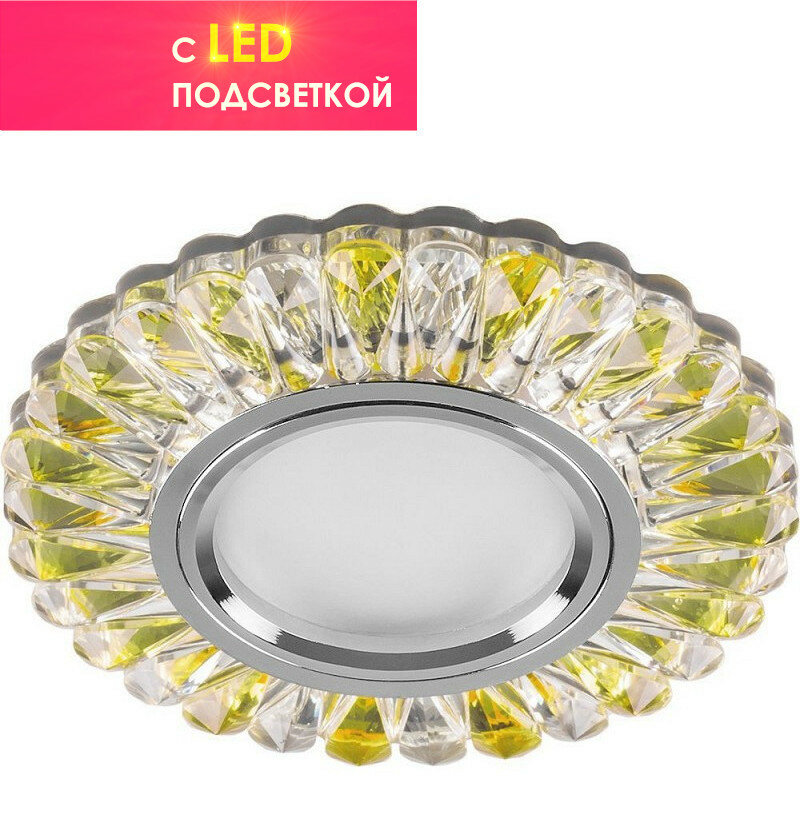Светильник потолочный встраиваемый точечный, MR16 G5.3, с диодной LED подсветкой, 15LED*2835 SMD 4000K, MR16 50W G5.3, прозрачный-желтый, хром, CD916 с драйвером в комплекте