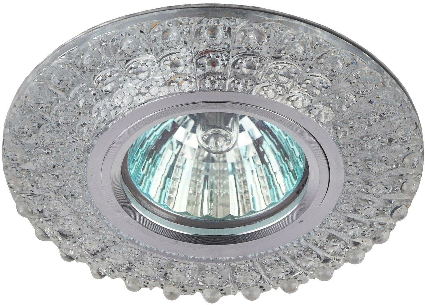 DK16 CH/WH/BK Светильник ЭРА декор "круглый с мелкими хрусталиками" MR16,12V/220V, 50W, хром/прозра