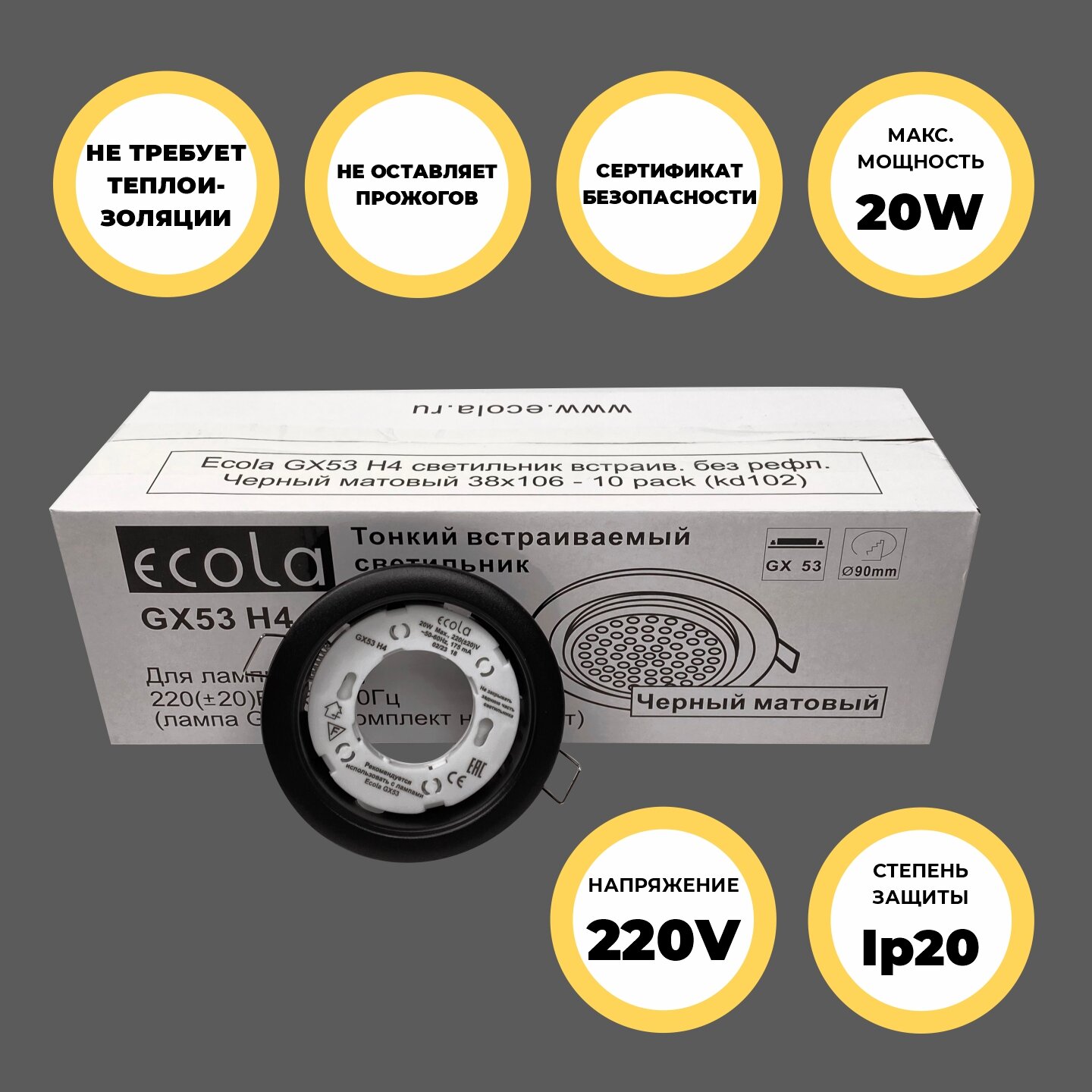 Встраиваемый светильник Ecola GX53, 10 шт, цвет: черный матовый, 38x106 интересное: