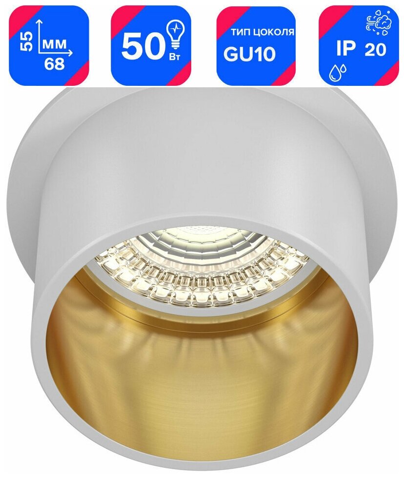 Светильник встраиваемый GU10 белый с золотом 50 Вт IP20 Maytoni Reif ДВО (DL050-01WG) интересное: