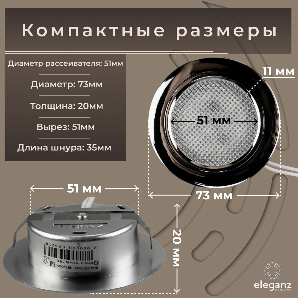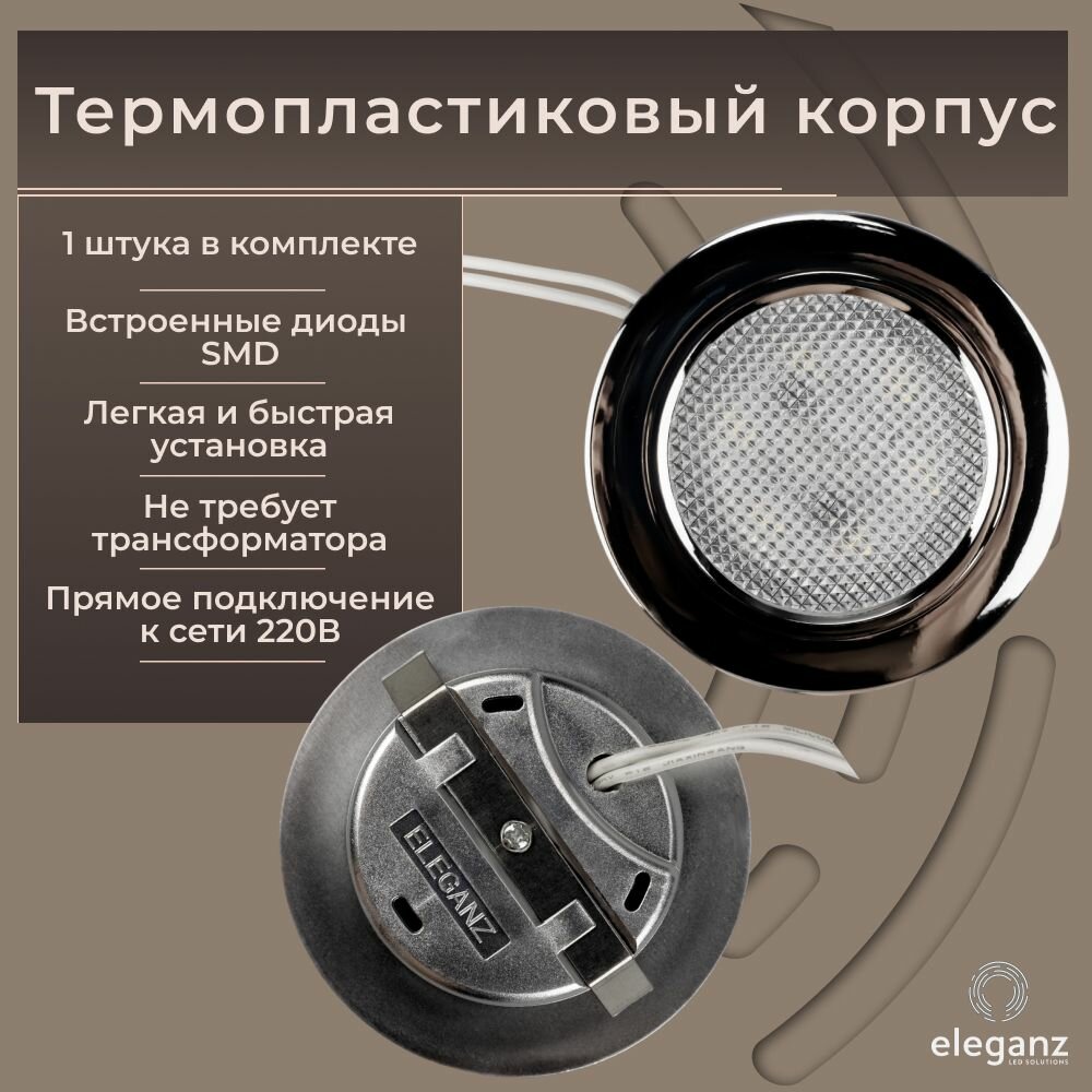 Светильник мебельный встраиваемый светодиодный "Eleganz 4W 220V", серебристый цвет, корпус Термопластик, круглый, 4500К, IP 40 интересное: