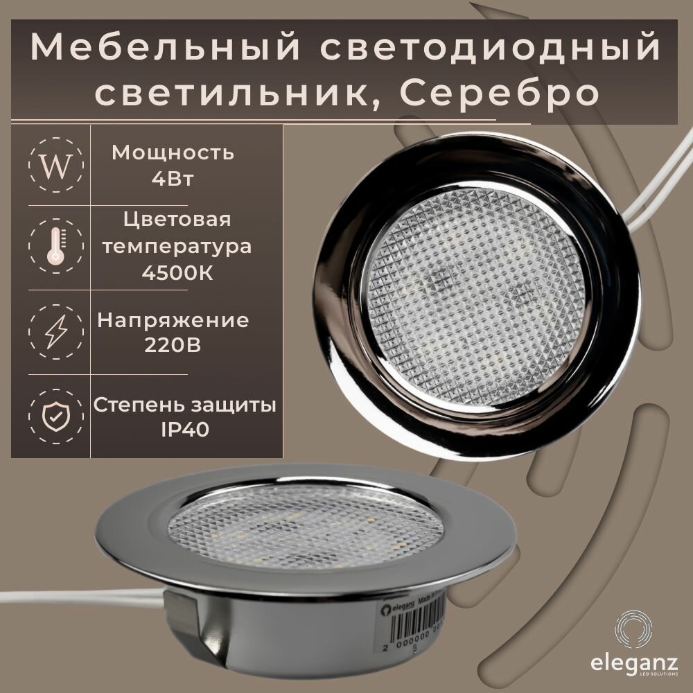 Купить Светильник мебельный встраиваемый светодиодный "Eleganz 4W 220V", серебристый цвет, корпус Термопластик, круглый, 4500К, IP 40