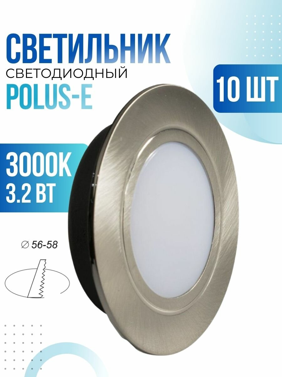 Купить Встраиваемый светильник GLS LED Polus-Е, 3.2 Вт, 220V IP44, 3000К, светодиодный мебельный врезной, никель матовый, 10 шт