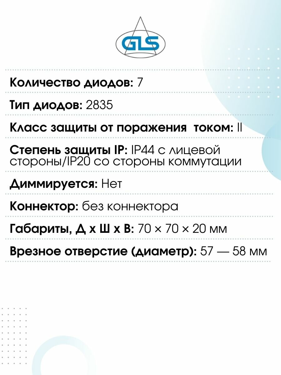 Ниже Вы можете прочитать отзывы на Встраиваемый светильник GLS LED Polus-Е, 3.2 Вт, 220V IP44, 3000К, светодиодный мебельный врезной, никель матовый, 10 шт, ознакомится с подробными характеристиками, посмотреть интересные обзоры и фотографии на Встраиваемый светильник GLS LED Polus-Е, 3.2 Вт, 220V IP44, 3000К, светодиодный мебельный врезной, никель матовый, 10 шт.