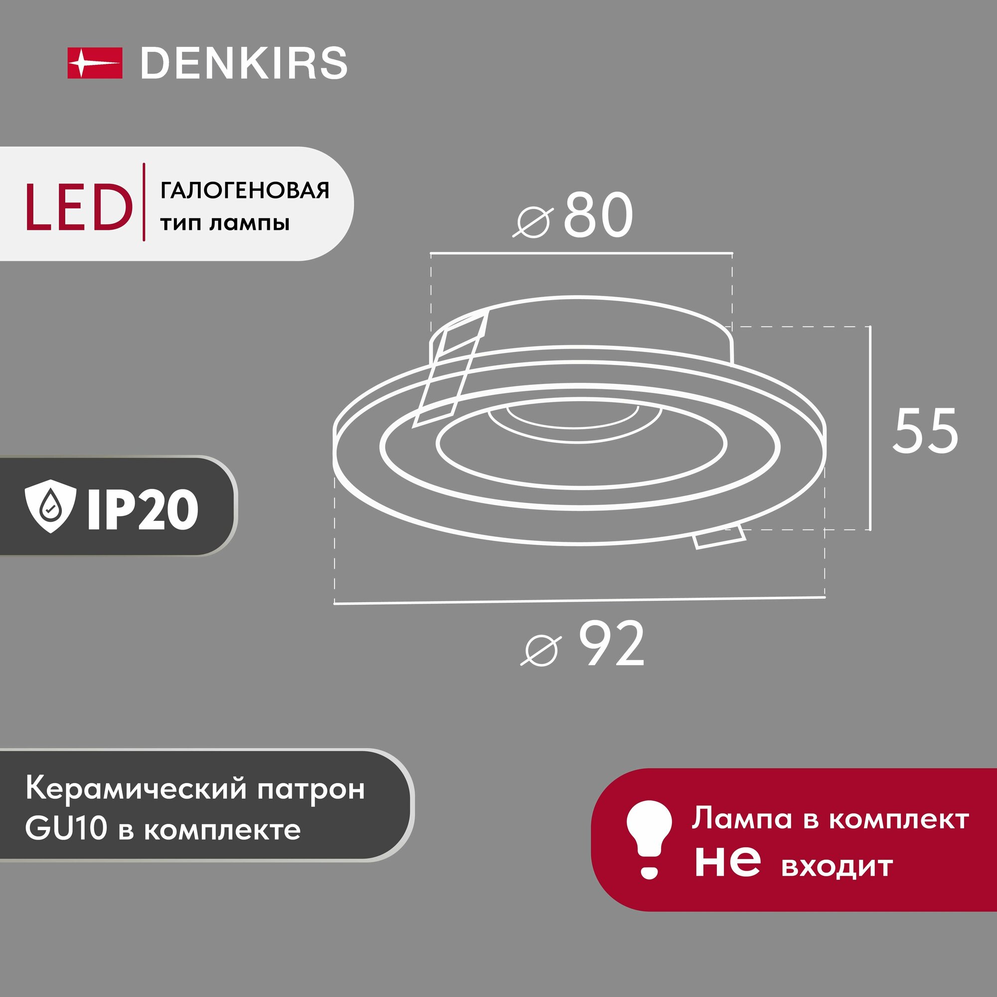 Denkirs (Денкирс) DK2060-WH Встраиваемый светильникIP 20, до 15 Вт, GU10, LED, белый, алюминий