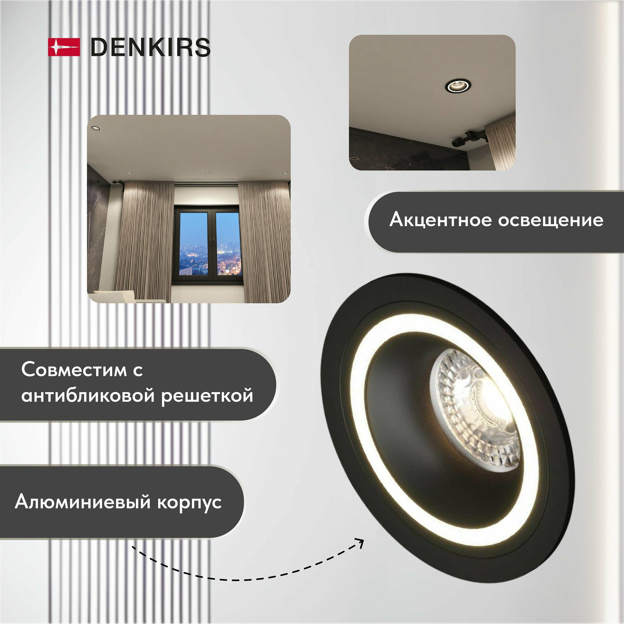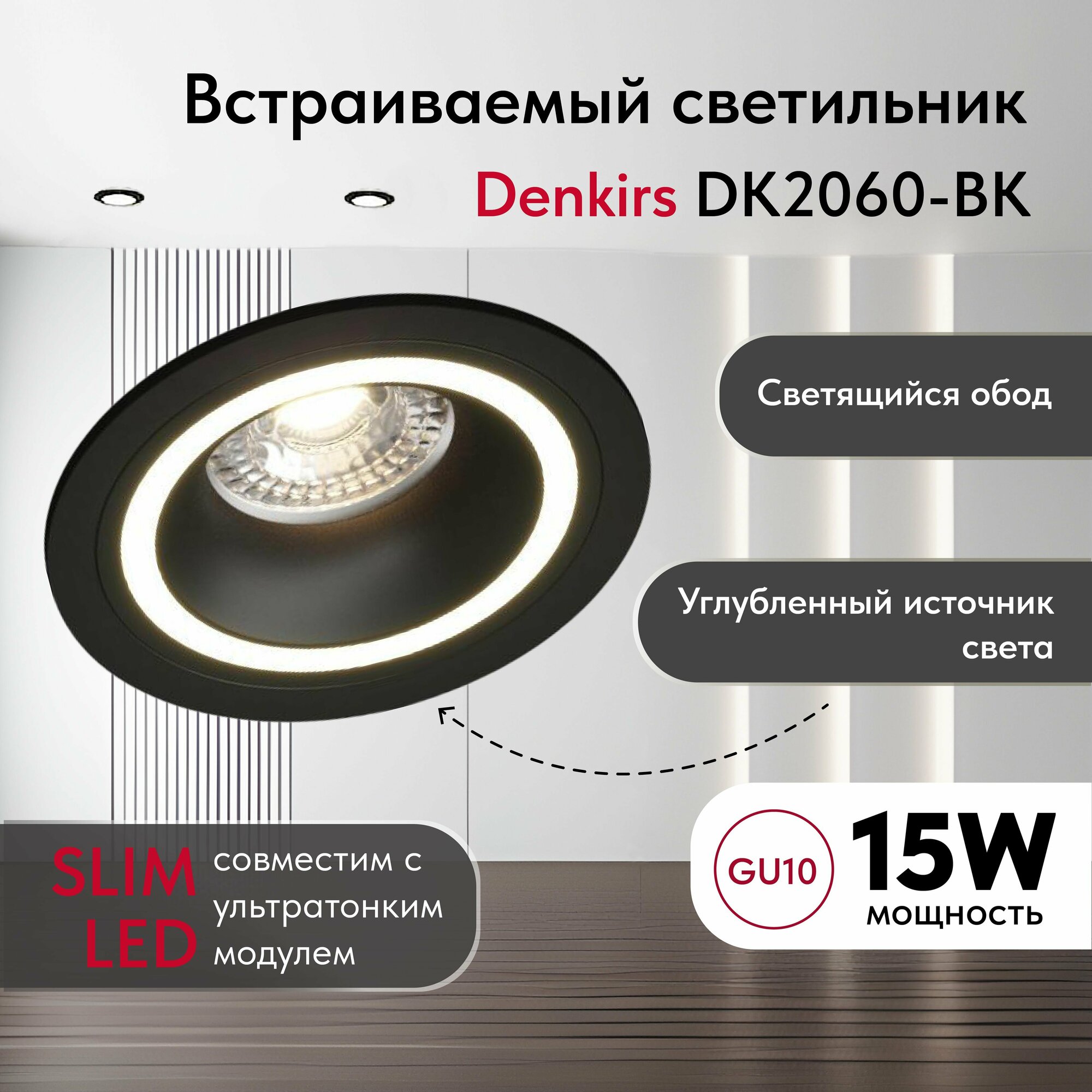 Светильник потолочный встраиваемый DENKIRS DK2060-BK, IP 20, до 15 Вт, GU10, LED, черный, алюминий интересное: