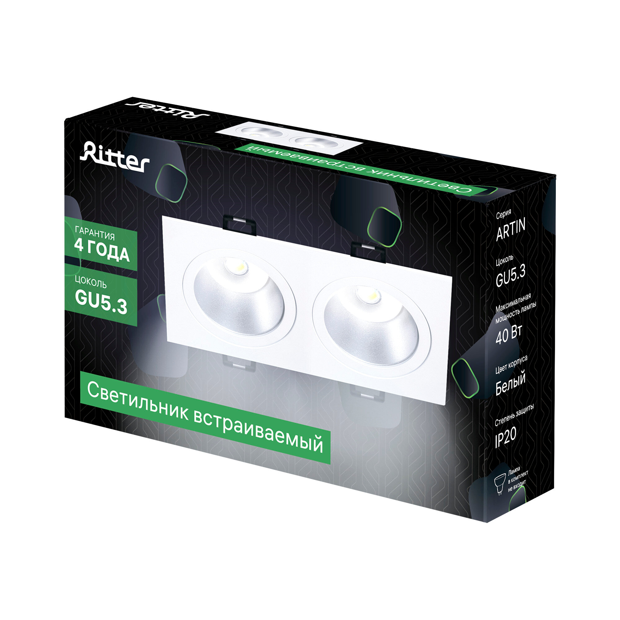 Светильник встраиваемый потолочный Artin, 2хGU5.3, 175х94х25мм, алюминий, белый, прямоугольный Ritter, 51425 1 интересное:
