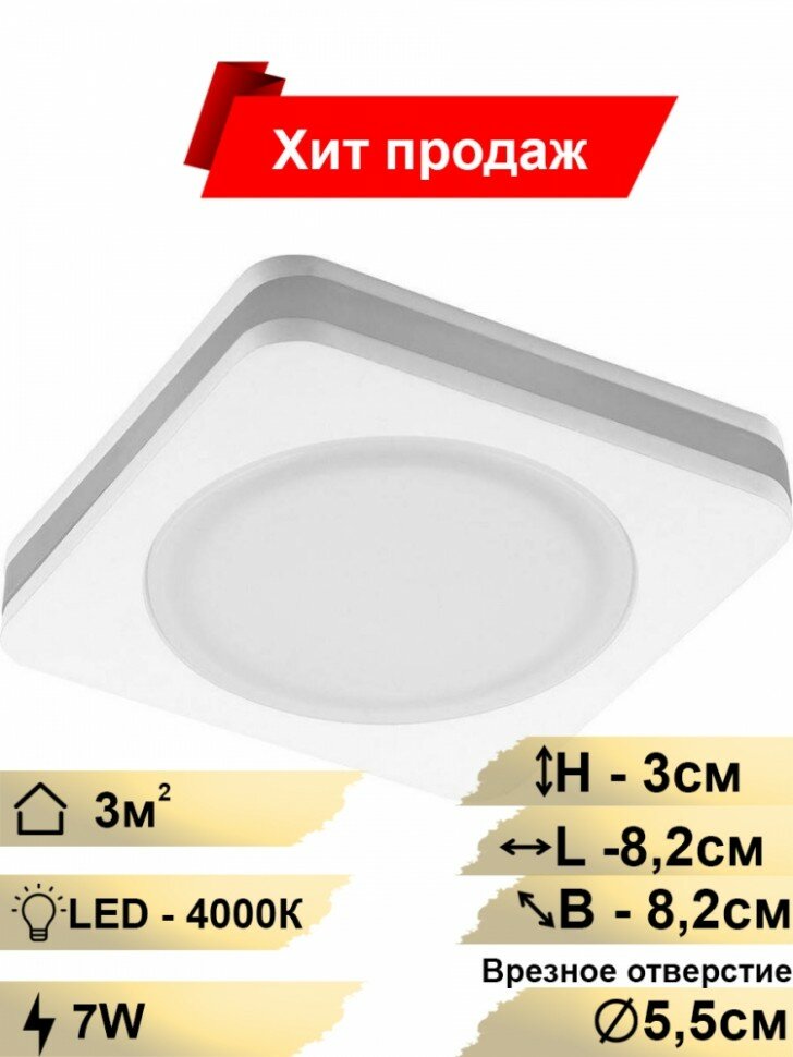 Светильник встраиваемый светодиодный 7W, 560 Lm, 4000К, белый, AL601 интересное: