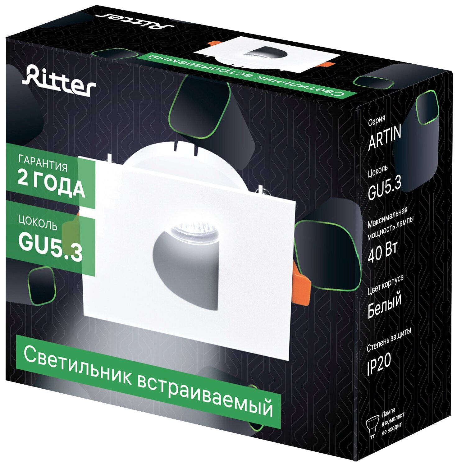 Светильник встраиваемый потолочный Artin, 84х84х35мм, монтажное отверстие 75х75мм, GU5.3, белый, Ritter, 51439 8