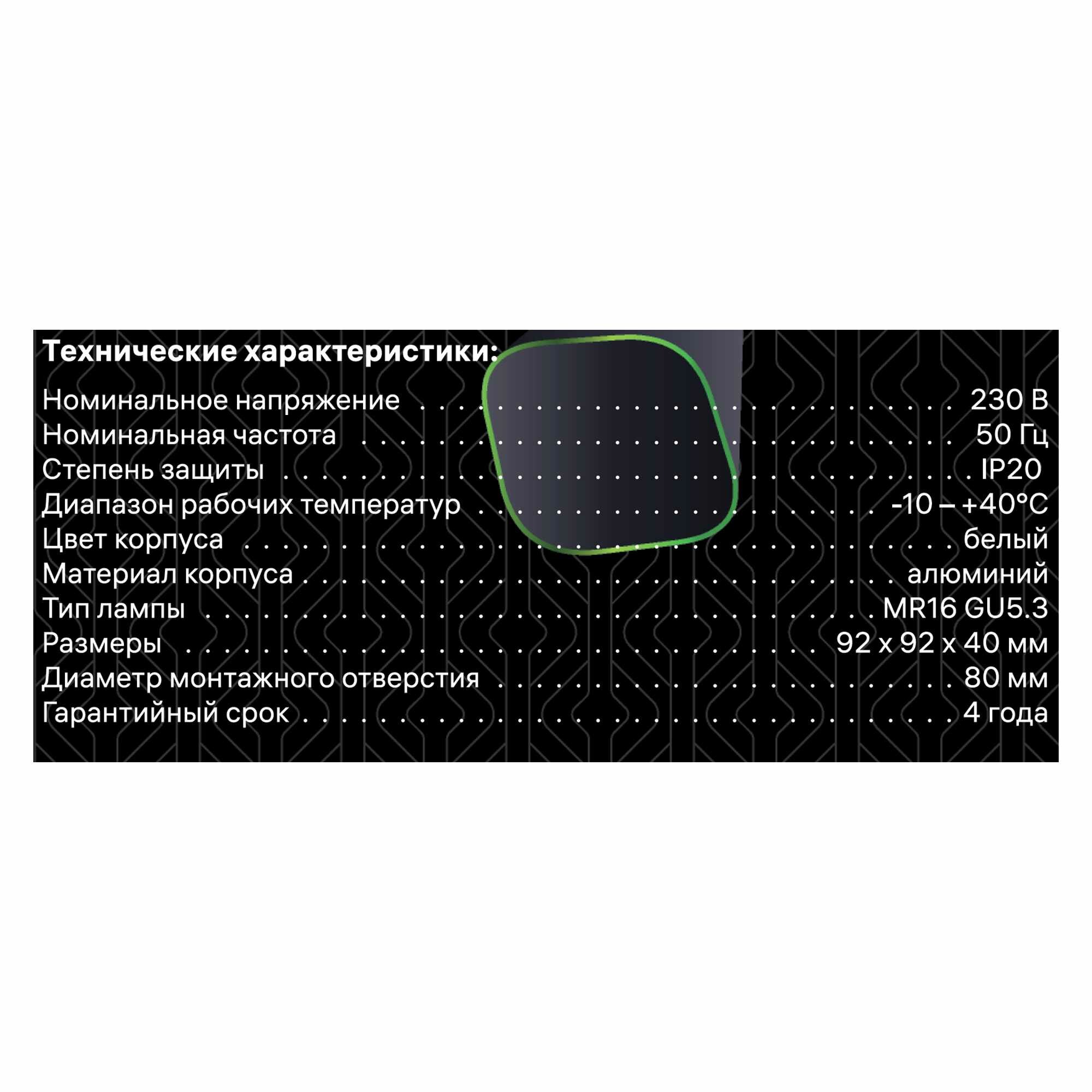 Светильник встраиваемый потолочный Artin, 87х87х38мм, монтажное отверстие 75х75мм, GU5.3, алюминий, белый, Ritter, 51433 6