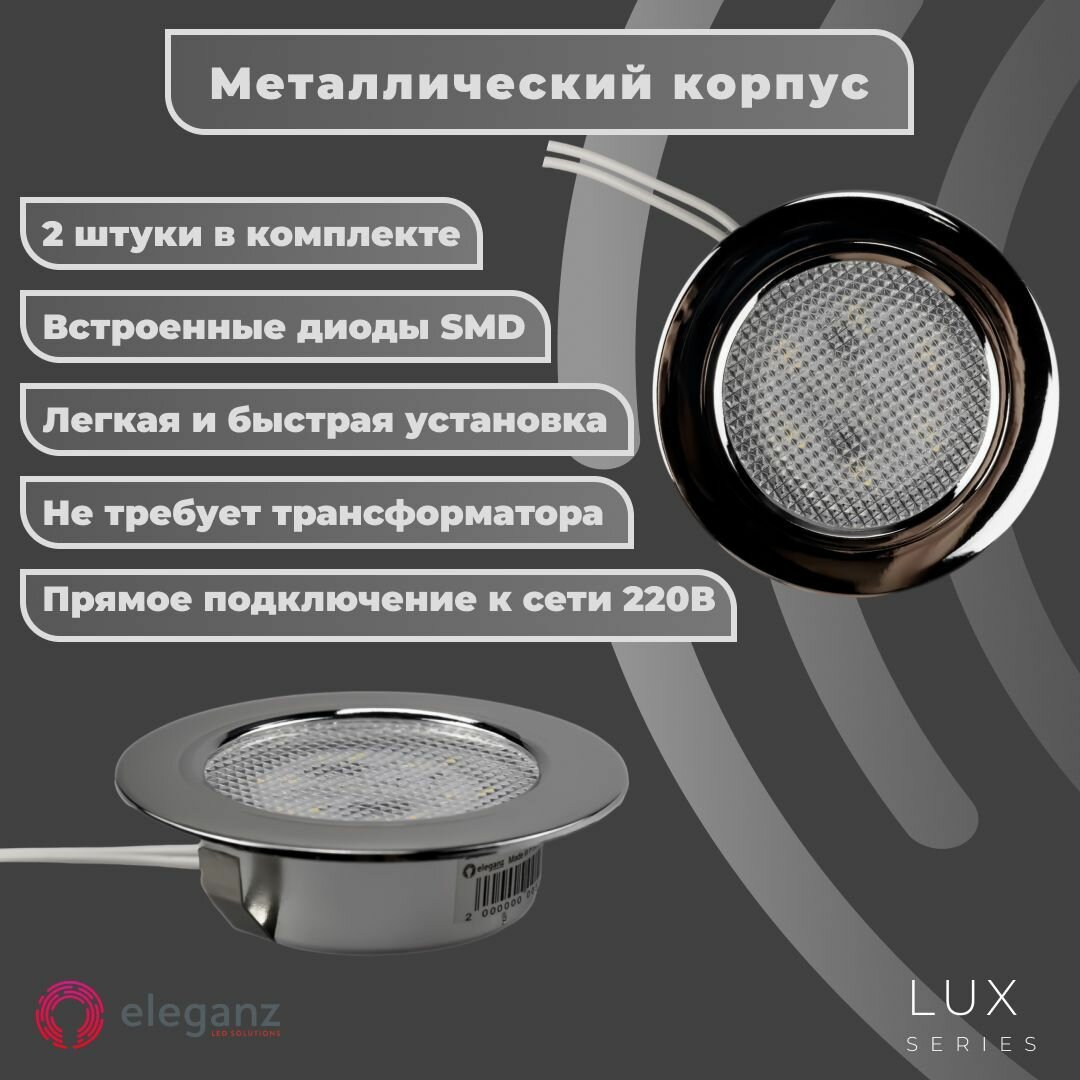 Купить Светильник мебельный встраиваемый светодиодный "Eleganz 4W 220V", цвет хром, корпус Металл, круглый, 4500К, IP 40 (2шт.)