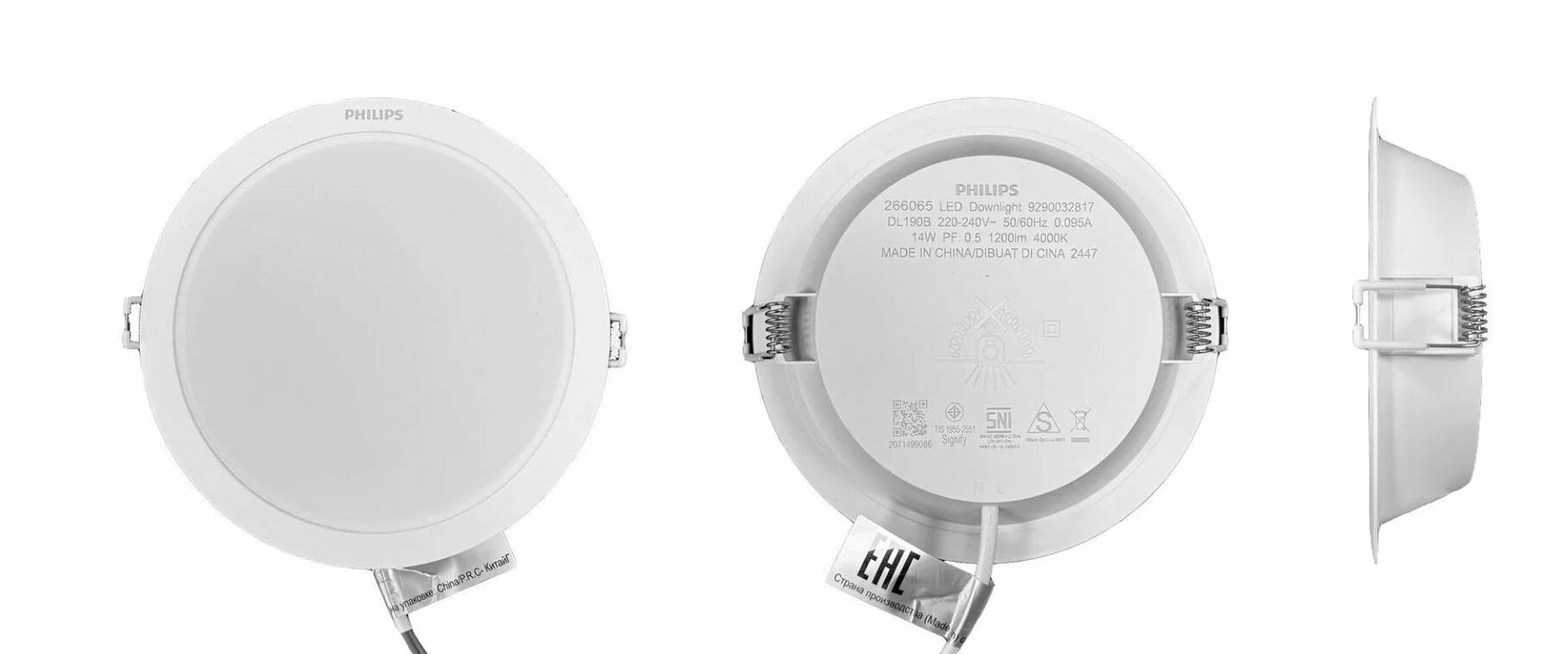 Купить 10шт/уп. Встраиваемый светильник 14W 4000K WH 1200lm d-150 D-165 H-35 Свет Дневной белый Eridani DL190B LED11 D150 Philips, уп. 10шт