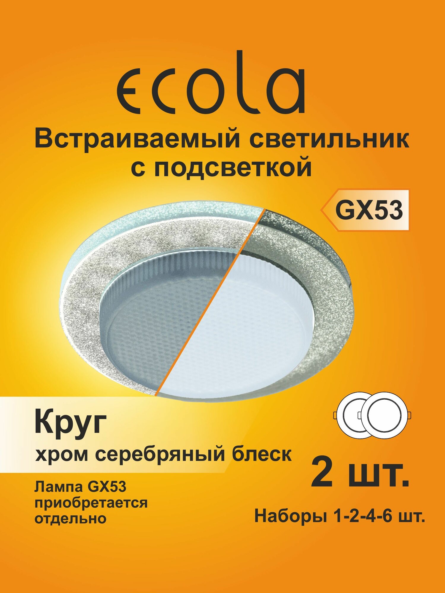 Купить 2 шт. Светильник GX53 потолочный встраиваемый с подсветкой Ecola Стекло - Круг хром - серебряный блеск LD5310