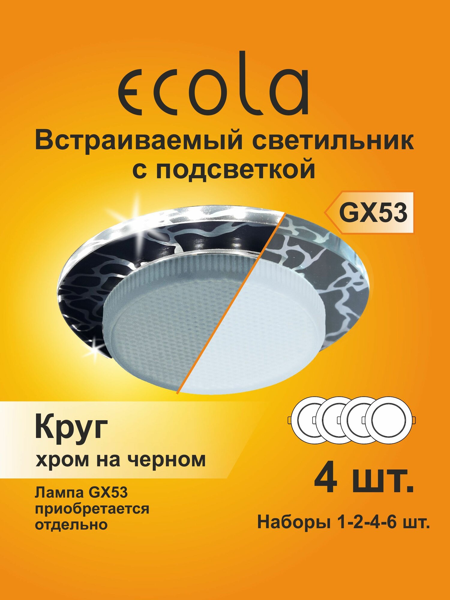 4 шт. Светильник GX53 потолочный встраиваемый с подсветкой Ecola Стекло - Круг черный хром - черный LD5310
