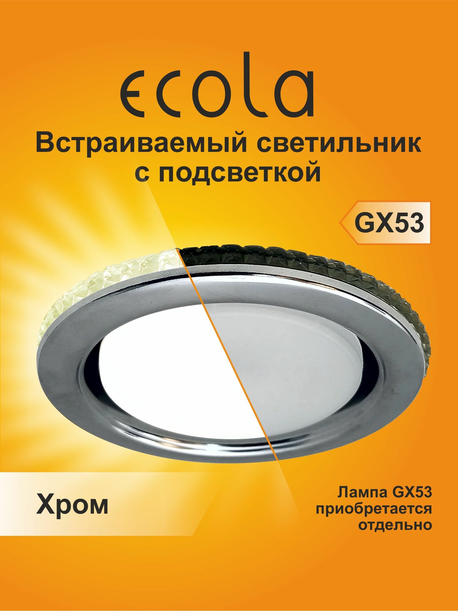 2 шт. Светильник GX53 потолочный встраиваемый с подсветкой Ecola металл - Круг - хром LD5300