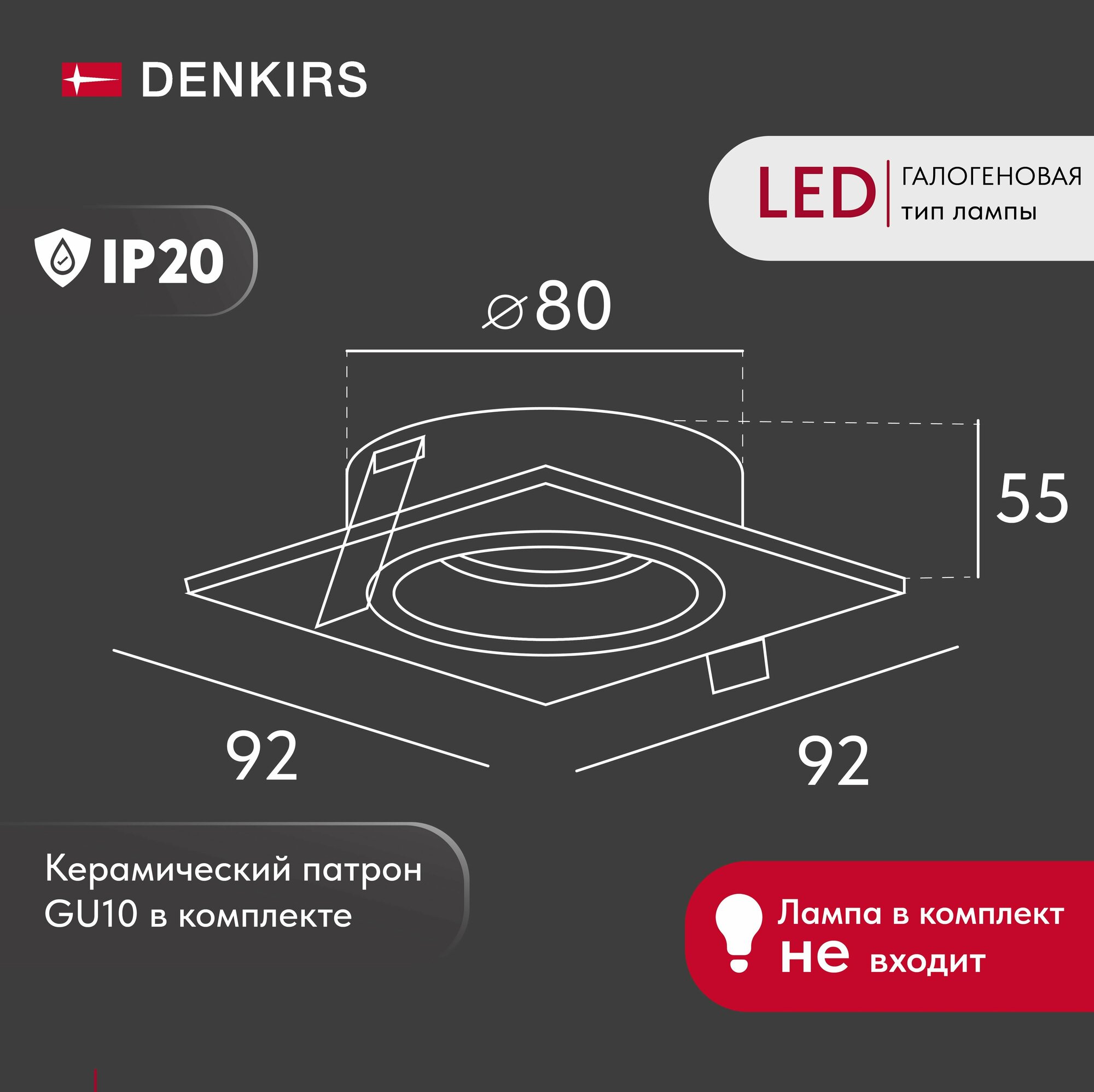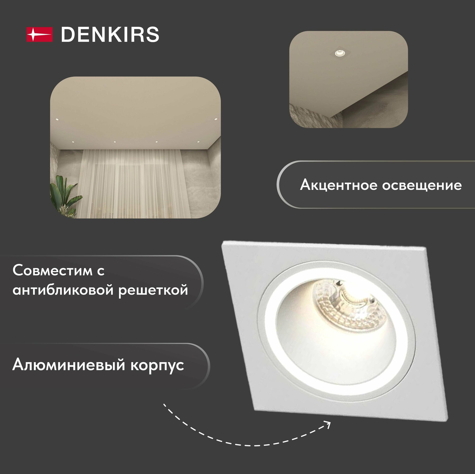 Светильник потолочный встраиваемый DENKIRS DK2061-WH, IP 20, до 15 Вт, GU10, LED, белый, алюминий интересное: