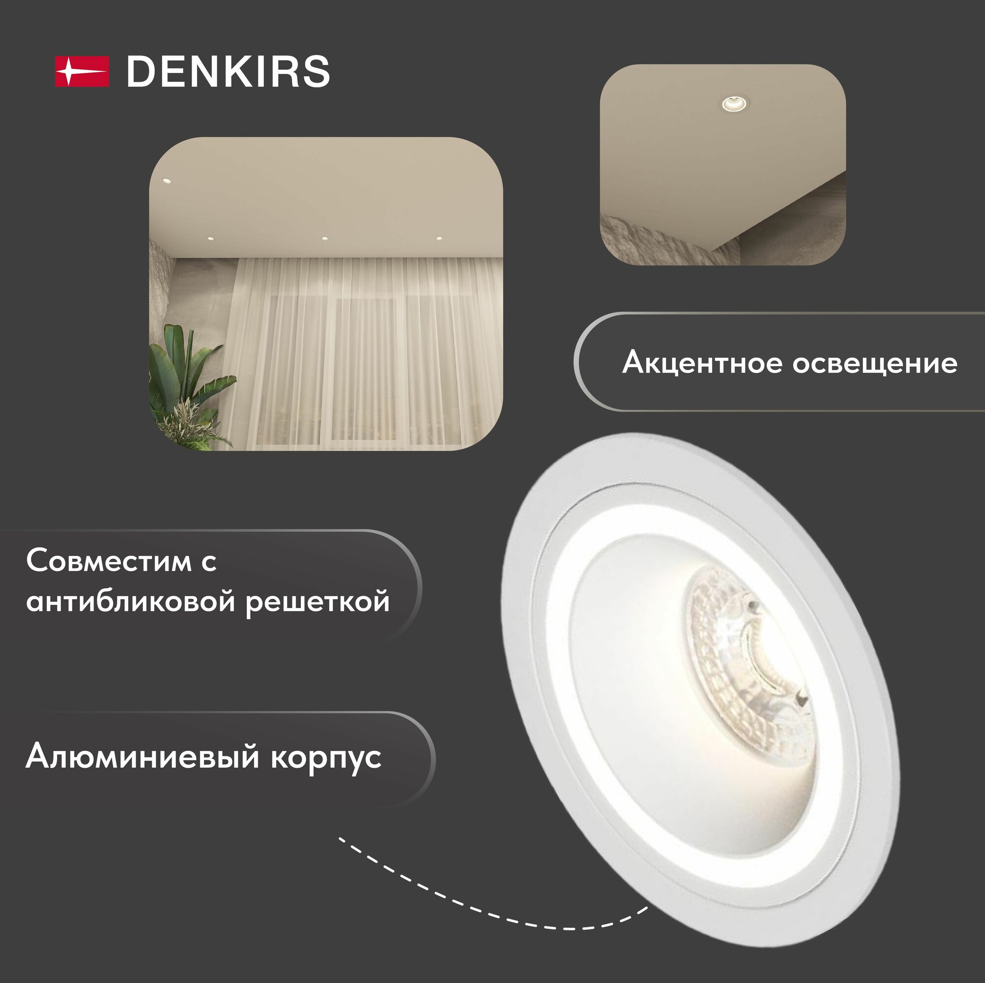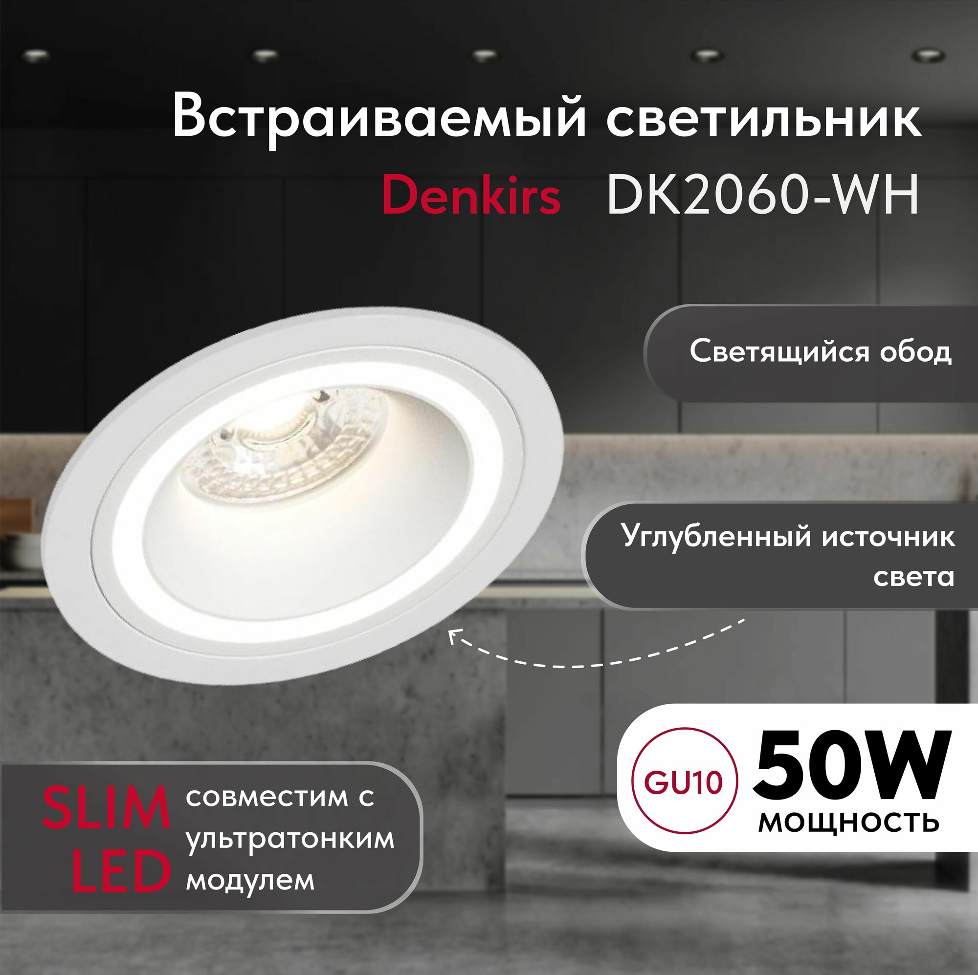 Светильник потолочный встраиваемый DENKIRS DK2060-WH, P 20, до 15 Вт, GU10, LED, белый, алюминий интересное: