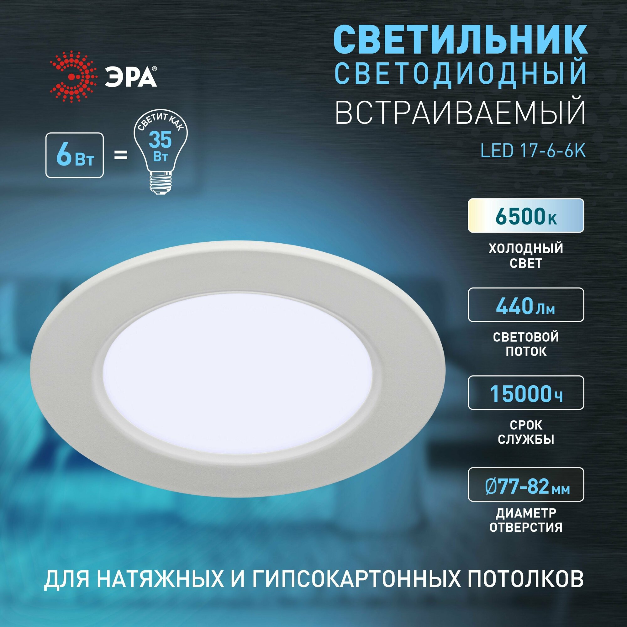 Светильник встраиваемый ЭРА LED панель 6Вт 6500K 440Лм интересное: